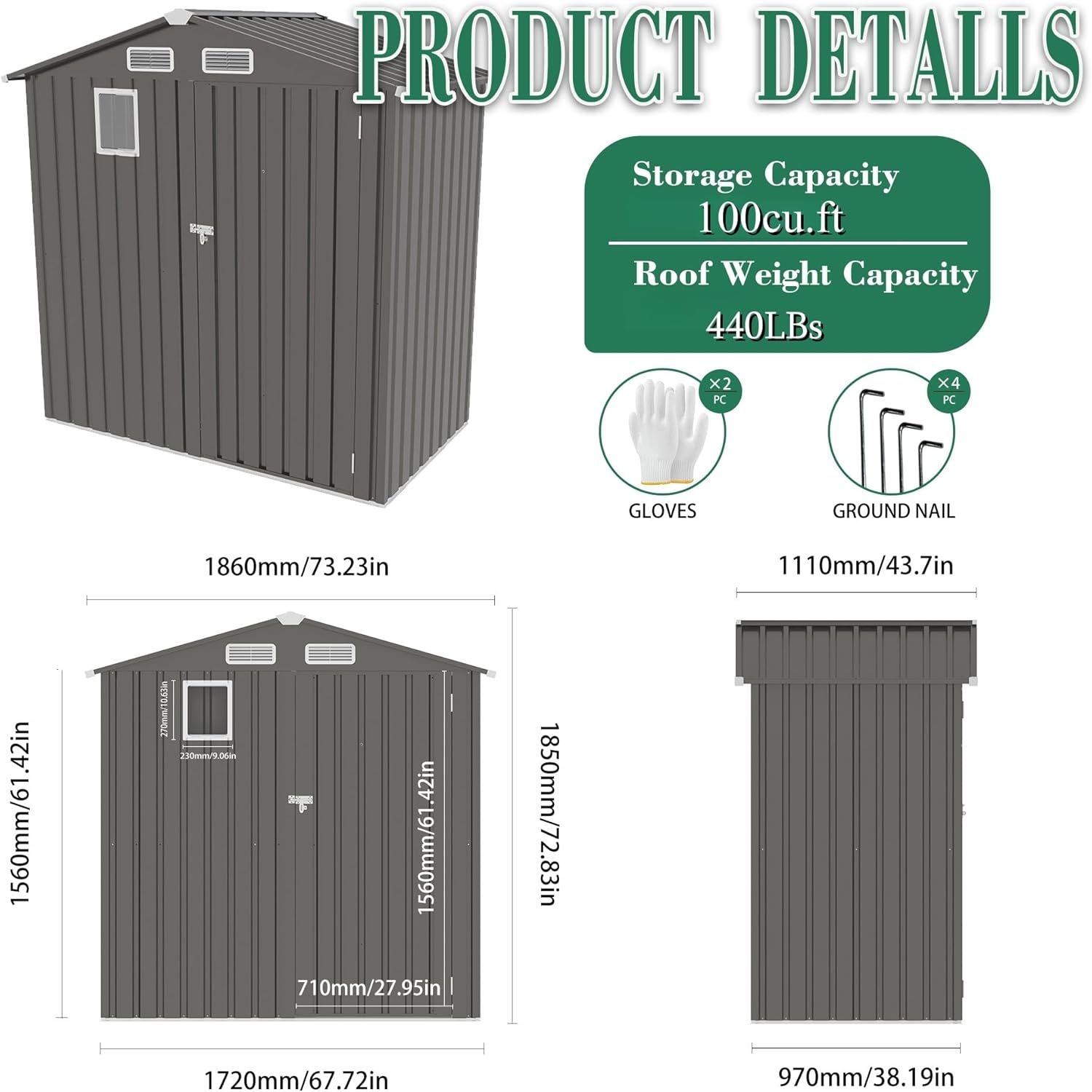 - MULTI-APPLICATION OUTDOOR SHED: The metal shed can better store your tools such as lawn mowers,bicycles,BBQ grills,and more. You also can use this storage shed as a pet shelter or greenhouse. Stay organized effortlessly.