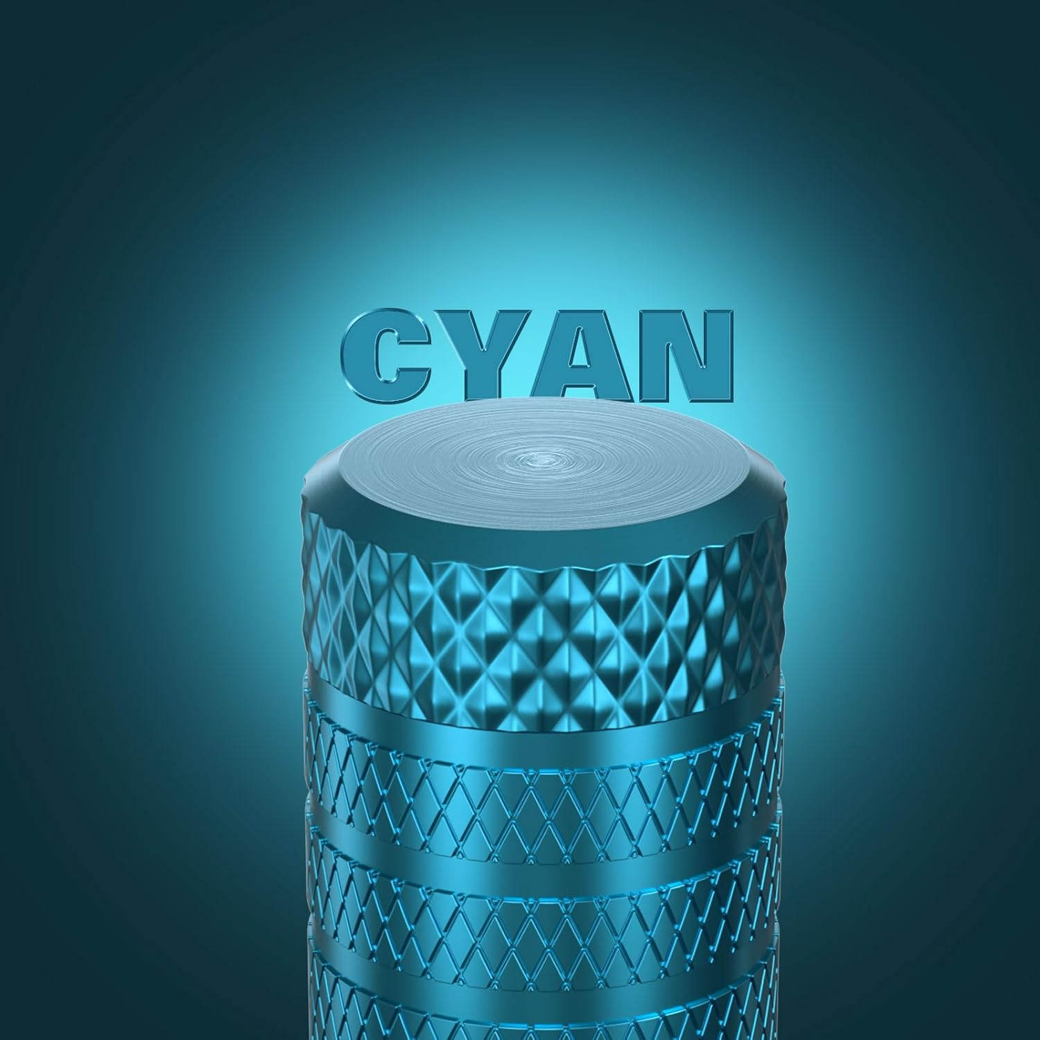 CKAuto Tire Valve Stem Caps, Cyan, 4 pcs/Pack, Anodized Aluminum Tire Valve Cap Set, Corrosion Resistant, Universal Stem Covers for Cars Trucks Motorcycles SUVs and Bikes