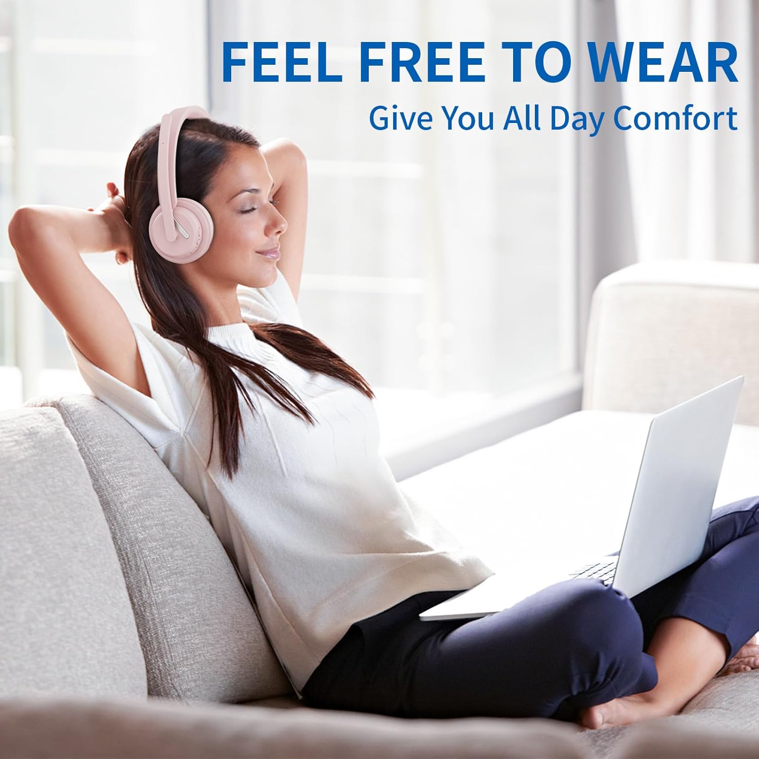 - All Day Comfort: Noise canceling headphones have super soft & breathable earmuffs, adjustable padded headband and microphone, provide ultimate comfort throughout the day, designed for people who need to calls or video conferences/play games for a long time. Bluetooth headset with microphone compatible with popular platforms such as Zoom, Skype, Webex, MS Teams, etc.