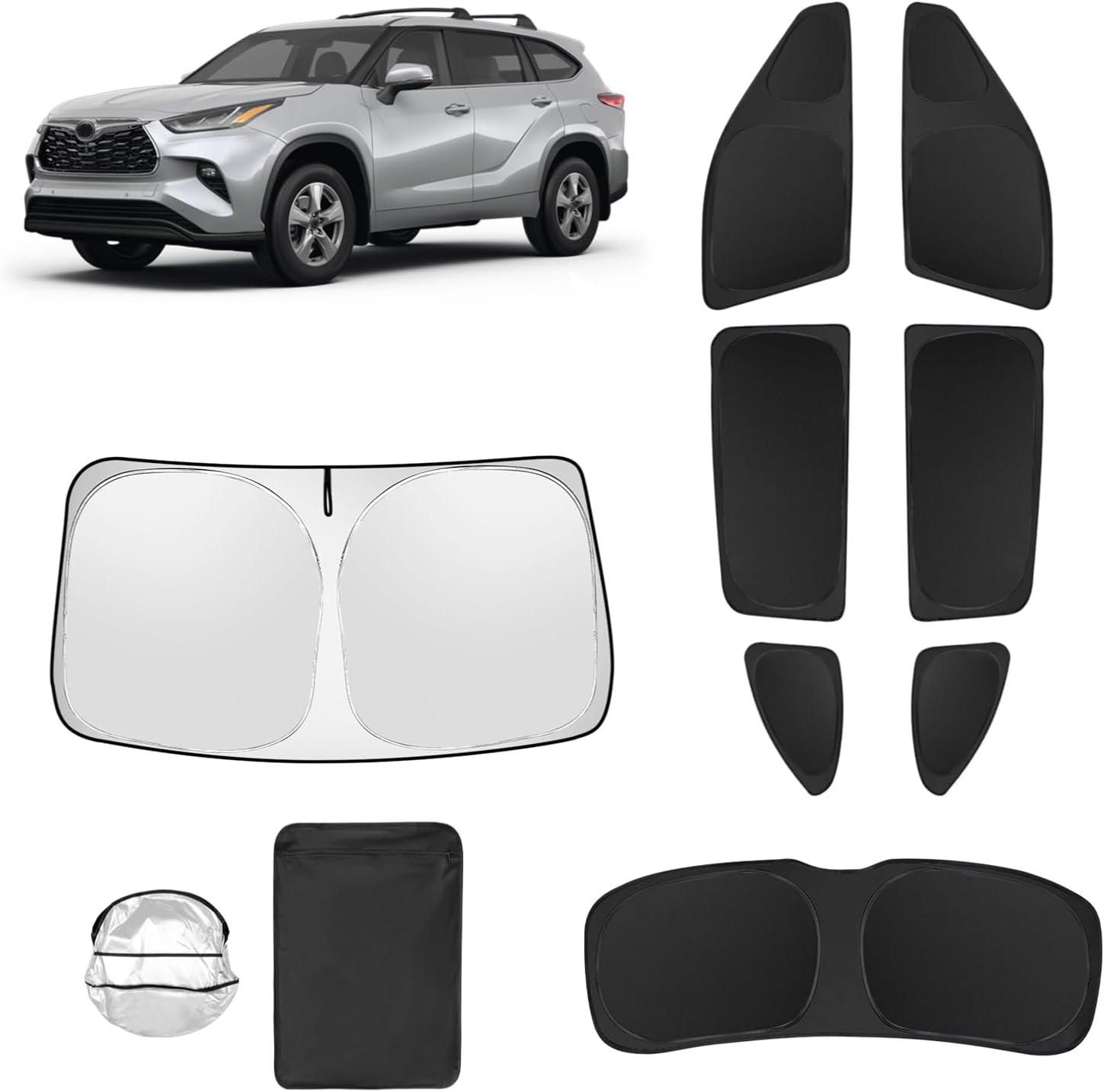 8pcs Car Window Shades for Toyota Highlander 2020-2025 Accessories,Windshield Side Rear Full Sunshade,Sun Visor UV Blocking, Privacy Protection and Blackout for Camping Outdoor