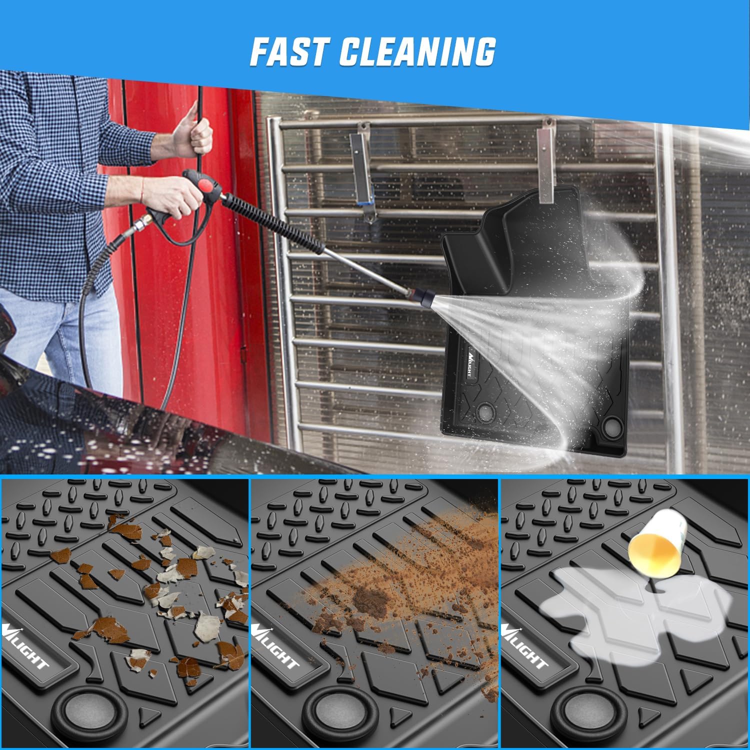 - FAST CLEANING - You can wash off messes that end up on your floor mats in seconds with soap and water. In some cases, a simple spray of the hose will do the trick.