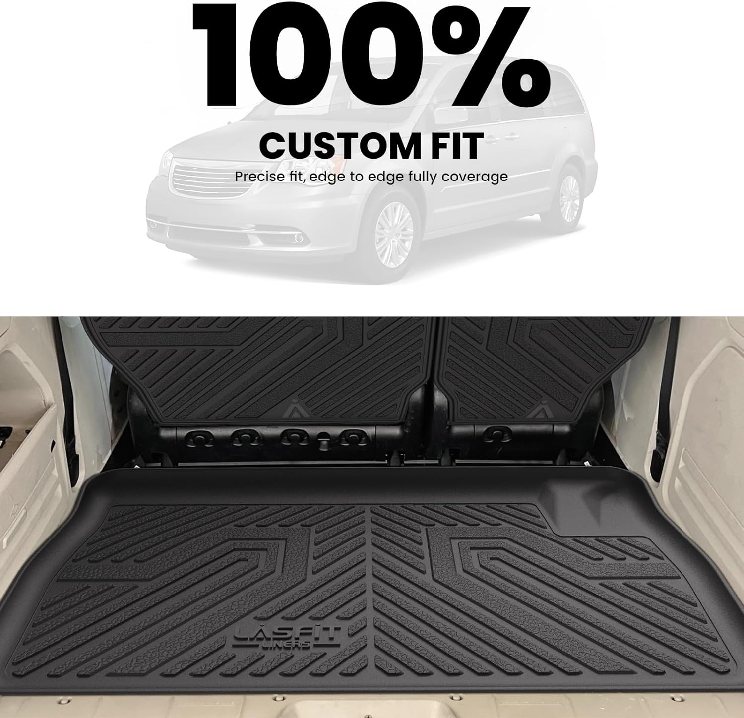 LASFIT Backrest&Trunk Mats Fit for Chrysler Town & Country 2008-2016/Dodge Grand Caravan 2008-2020, All Weather TPE Fit Cargo Liner for Chrysler Town & Country & Dodge Grand Caravan Car Mats, Black