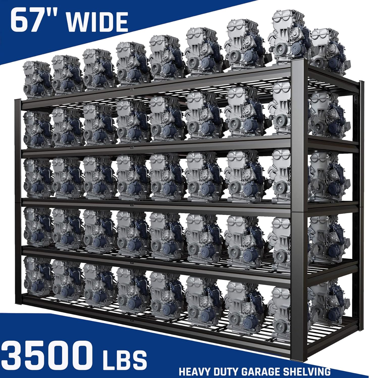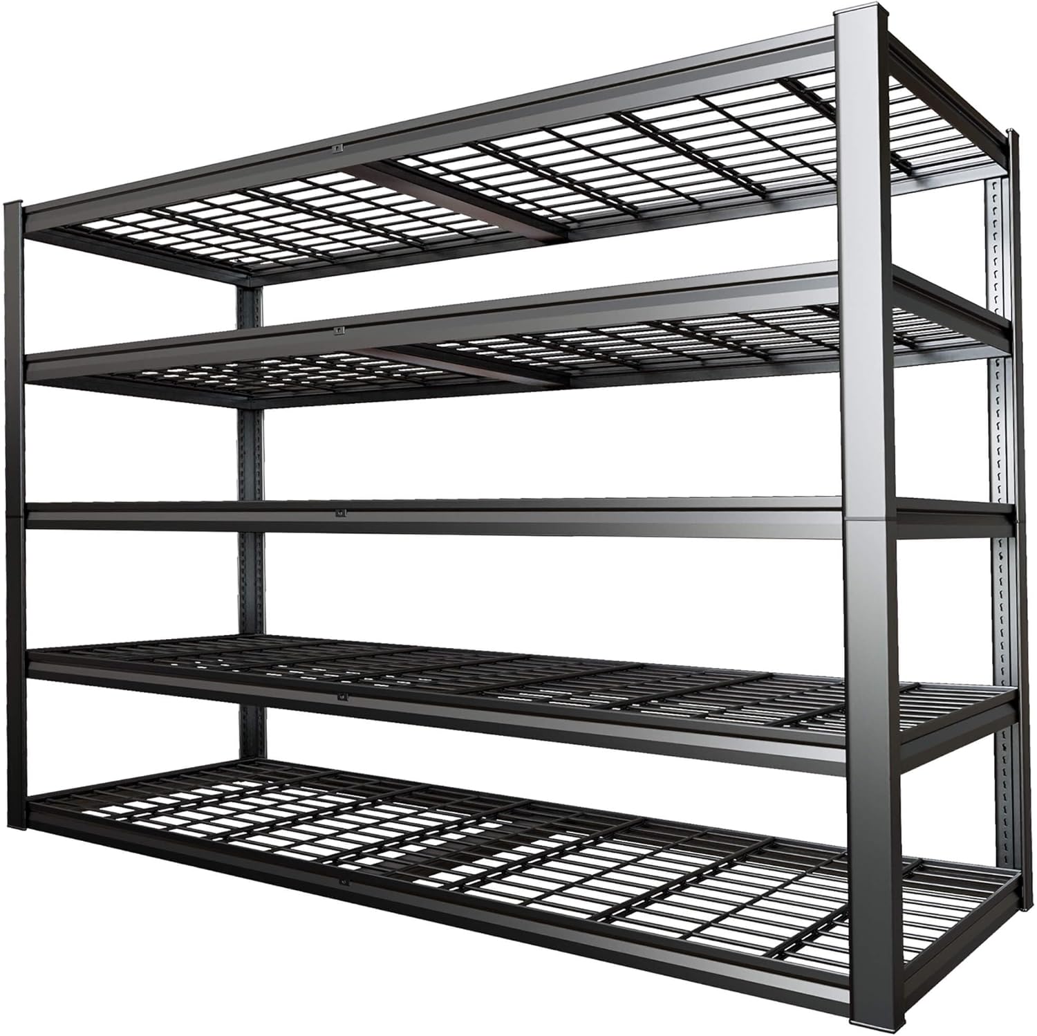 - 【Perfect for Multi-Scenario Storage】Ideal for garage shelving, workshop storage, or commercial shelving needs, this 67-inch-wide unit effortlessly organizes automotive parts, power tools, bulk supplies, or seasonal gear. Its double-layer wire decks and adjustable 5-tier design adapt to garages, warehouses, basement or shop shelves, while the 650 lbs/shelf capacity and wobble-free structure ensure safe, space-saving storage for heavy or oversized items.