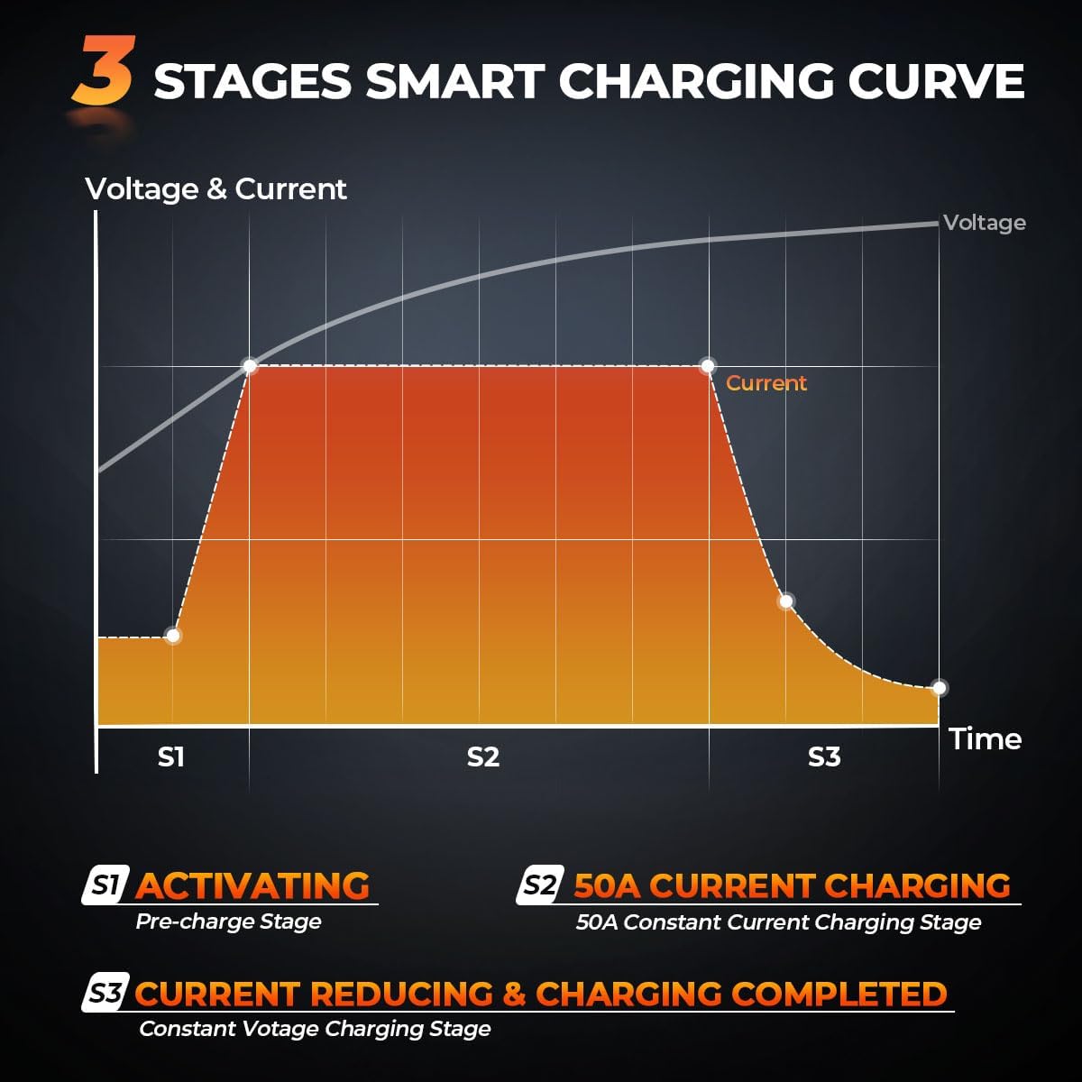 - 🚌【50Amp 12V Fast Battery Charger】: Our 12V (14.6V) 50A LiFePO4 lithium battery charger, charging voltage: 14.6V, charging current: 50A, input voltage: 100V-120V AC; 50Hz to 60Hz.Meanwhile, aluminum body and large cooling fan make the heat dissipation more efficient, reducing power waste and improving charging efficiency.And supporting a 0V charging function to reactivate the battery.