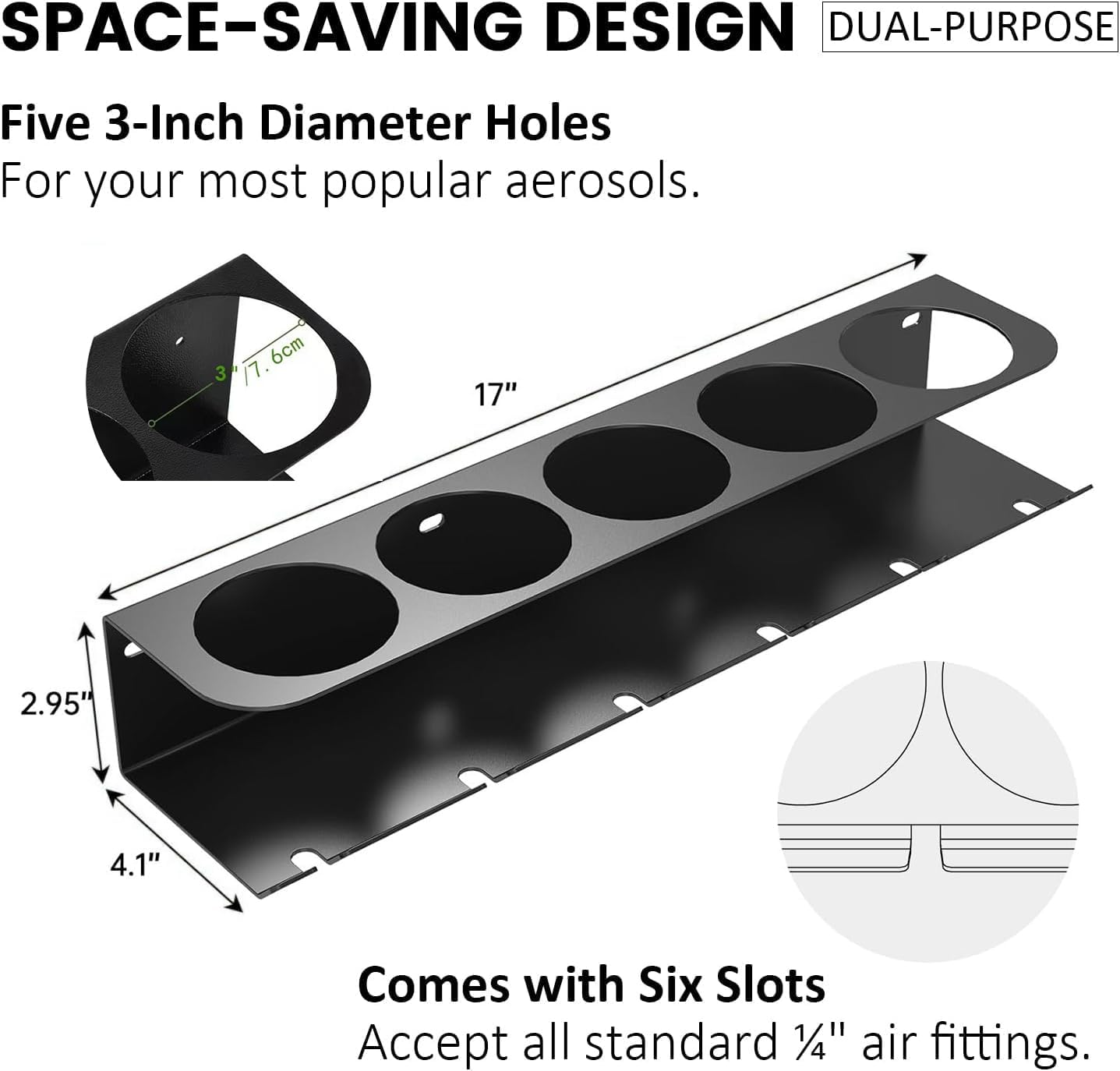 Spray Can Holder Rack Organizer,Pneumatic Tool Aerosol Rack Combo Paint Bottle Storage 5 Can Spray Bottle Holder Heavy-Duty Steel Wall Mounted for Garage and Workspace