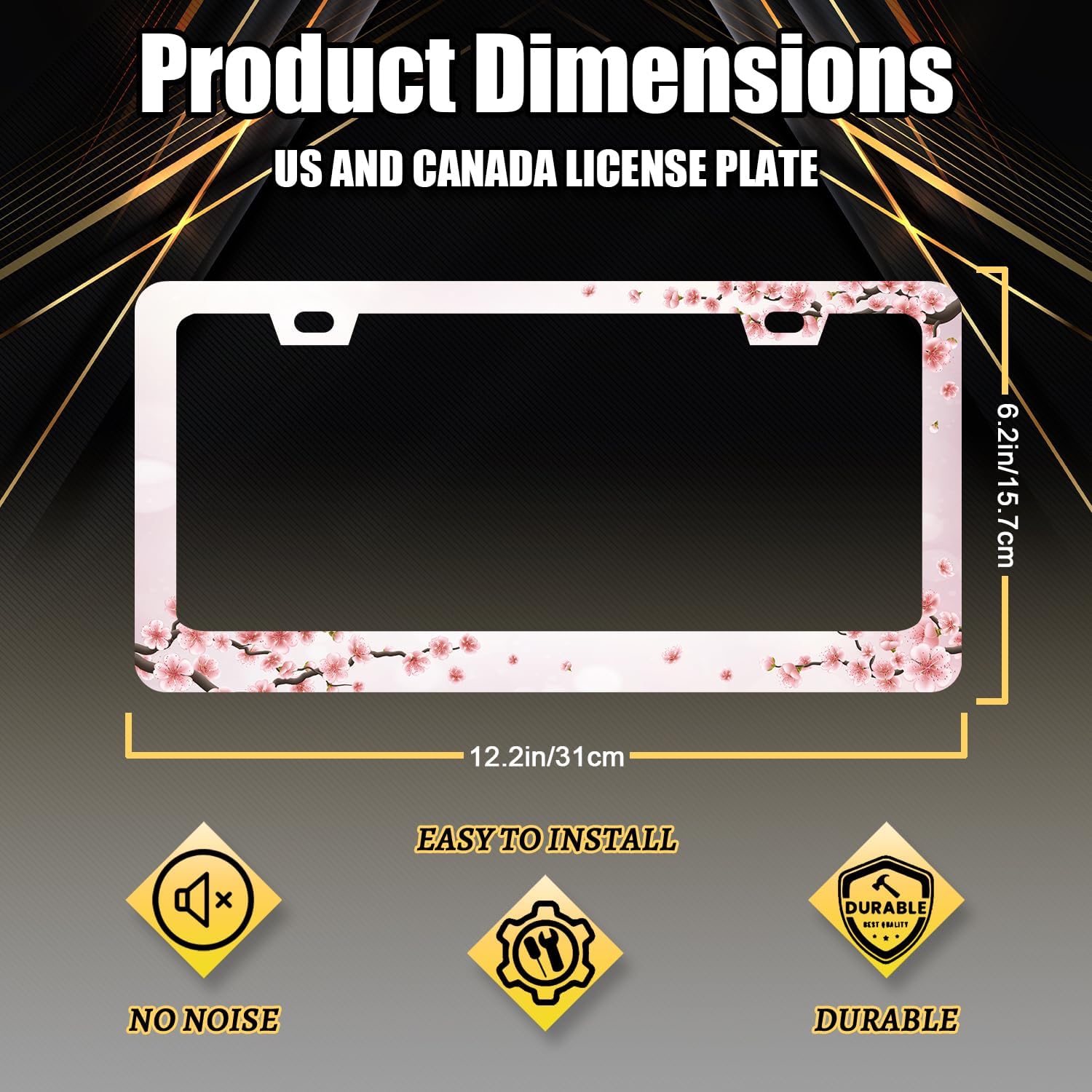- Size: The size of the license plate frame is 12.3" x 6.3" , it fits all standard size US and Canada vehicle license plates.Fashion design frame fits perfectly on your car license plate.