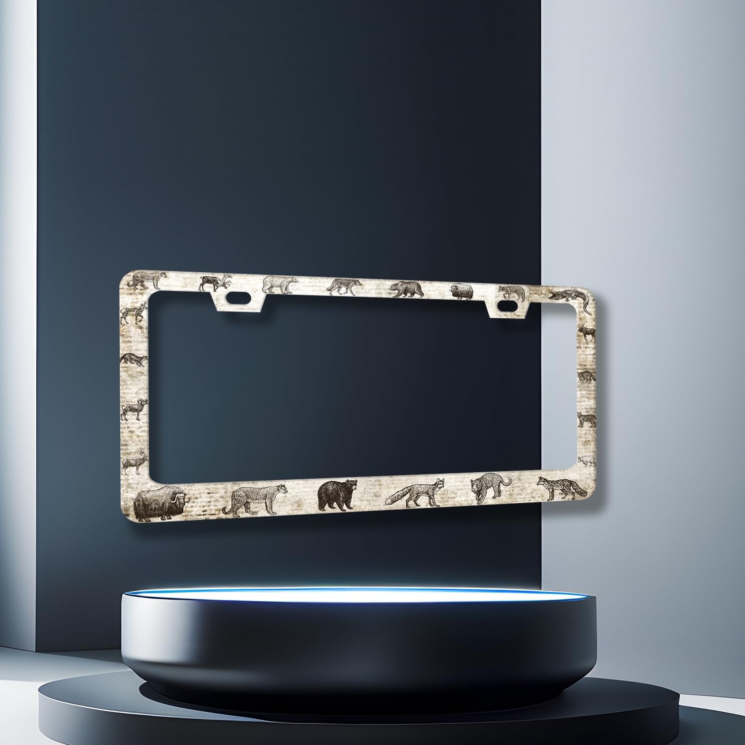 Animals License Plate Frame Bear Deer Horse Tiger License Plate Holder Stainless Steel Funny Design with 2 Holes and Screws 12.3" x 6.3"