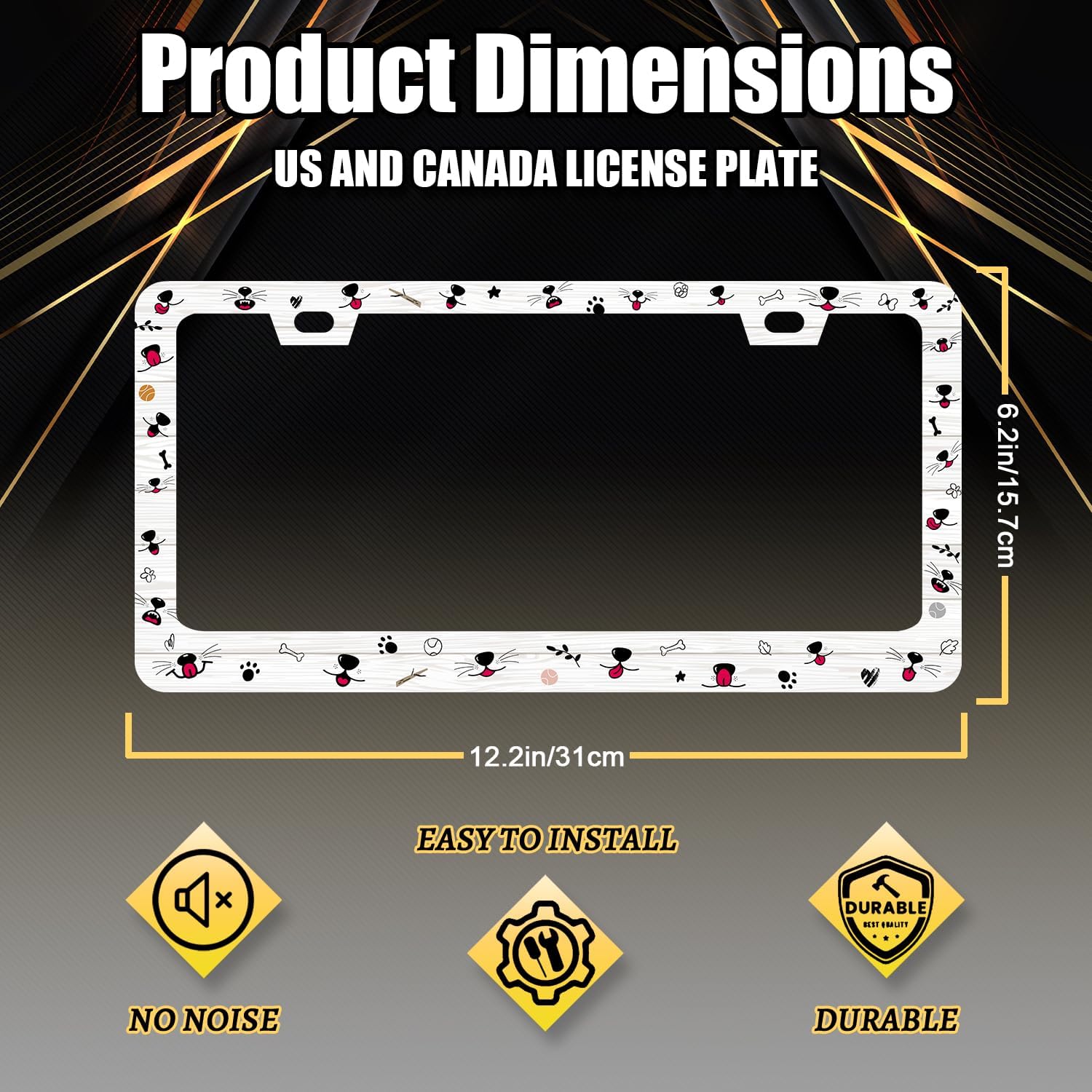 Cute Dog Cat Mouth License Plate Frame Colorful Animal License Plate Holder Stainless Steel License Plate for USA Canada 6.3" X 12.3" with 2 Holes and Screws