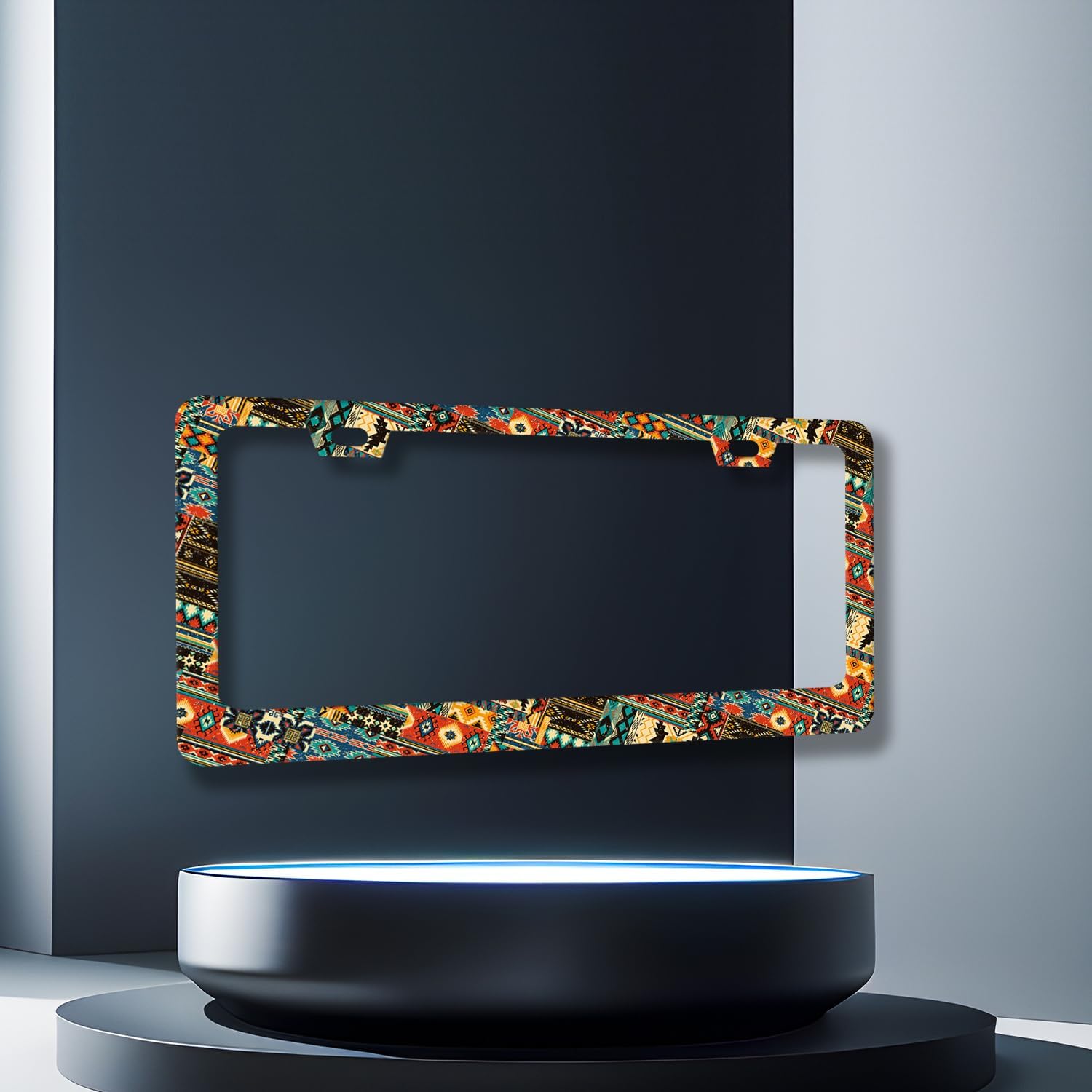 Ethnic Tribal Texture License Plate Frame Boho License Plate Holder Stainless Steel Funny Colorful Car Accessories Decoration 6.3" X 12.3" with 2 Holes Screws