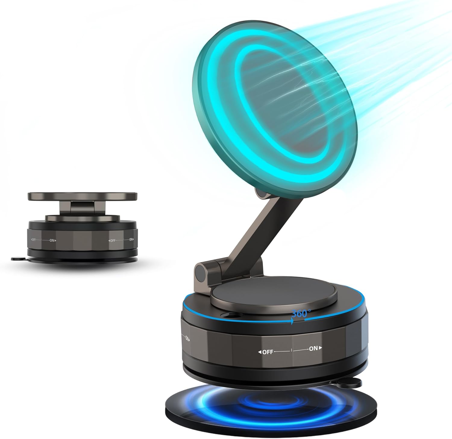 - 【Stronger Magnetic Force】The foldable vacuum magnetic phone holder uses intelligent vacuum sensing technology, with N52 strong permanent magnets and a wider contact surface, providing strong suction to firmly adsorb your 4-inch to 7-inch device. It can support your phone even in sudden braking, speed bumps and various road conditions.