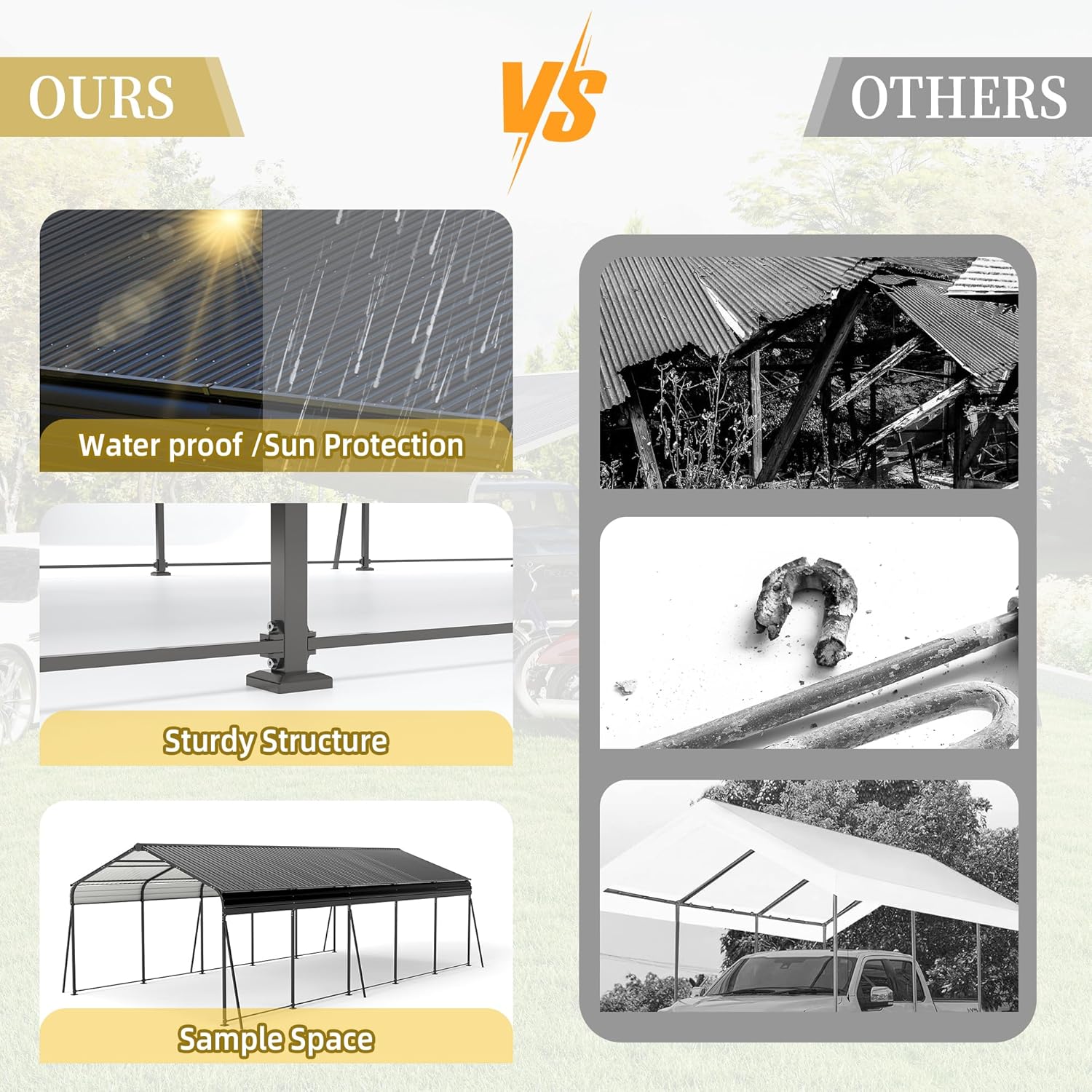 - ✅𝟏𝟎𝟎% 𝐂𝐮𝐬𝐭𝐨𝐦𝐞𝐫 𝐒𝐚𝐭𝐢𝐬𝐟𝐚𝐜𝐭𝐢𝐨𝐧:We guarantee the quality of our waterproof metal carport with a 12-month warranty and a 30-day return policy for your complete peace of mind. If you have any questions or encounter any issues, please don't hesitate to contact us. Our professional team is here to help and promises to address your concerns within 24 hours