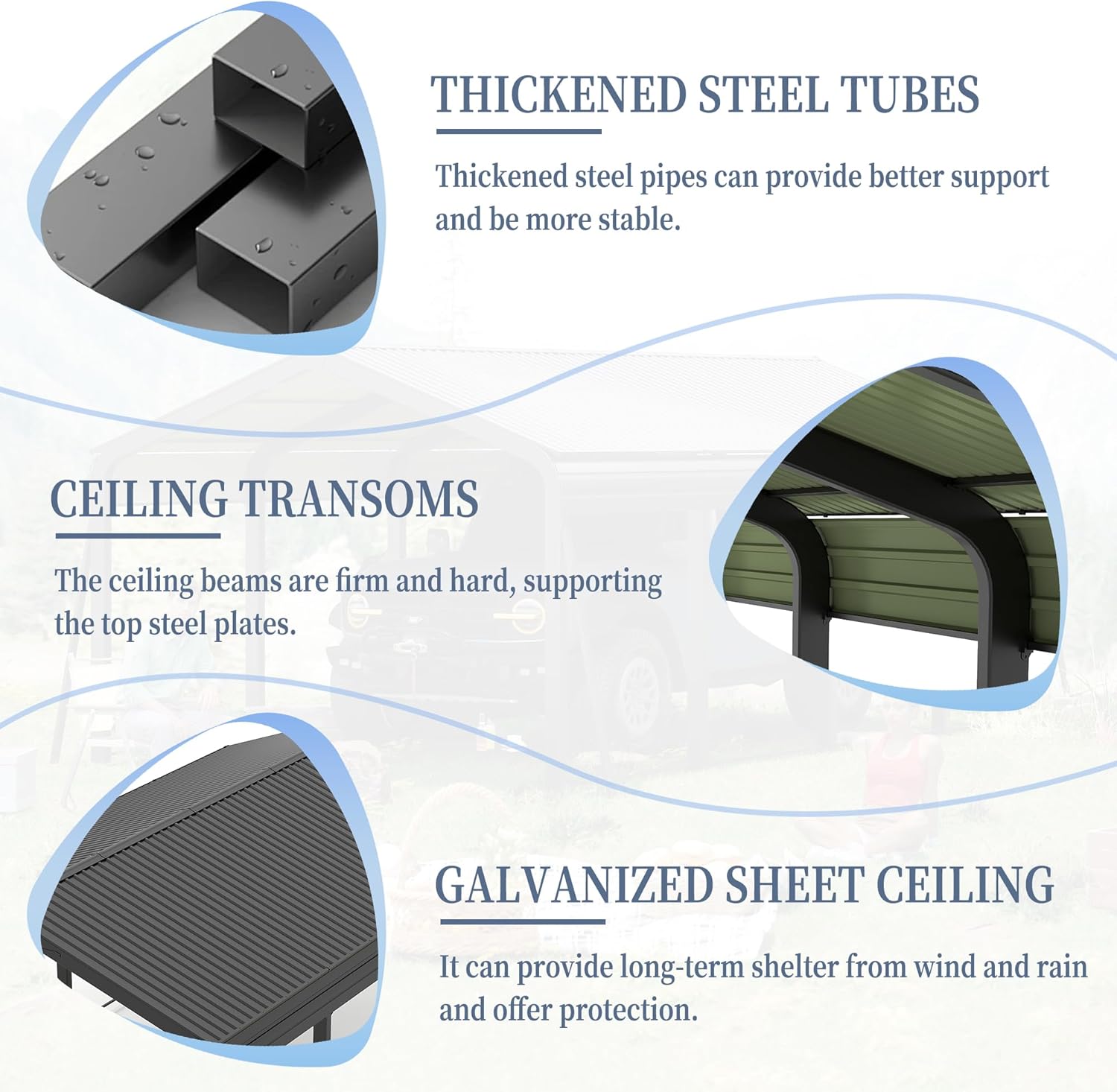 - ✅ 𝐀𝐥𝐥‑𝐖𝐞𝐚𝐭𝐡𝐞𝐫 𝐂𝐚𝐫𝐩𝐨𝐫𝐭: Sized at 12 × 20 ft, this metal carport provides year-round protection for your car, boat, and outdoor gear against wind, rain, and snow. Protruding eaves combined with rainproof tape seal out leaks during heavy downpours. Say goodbye to parking headaches under reliable, all-season heavy duty car ports.