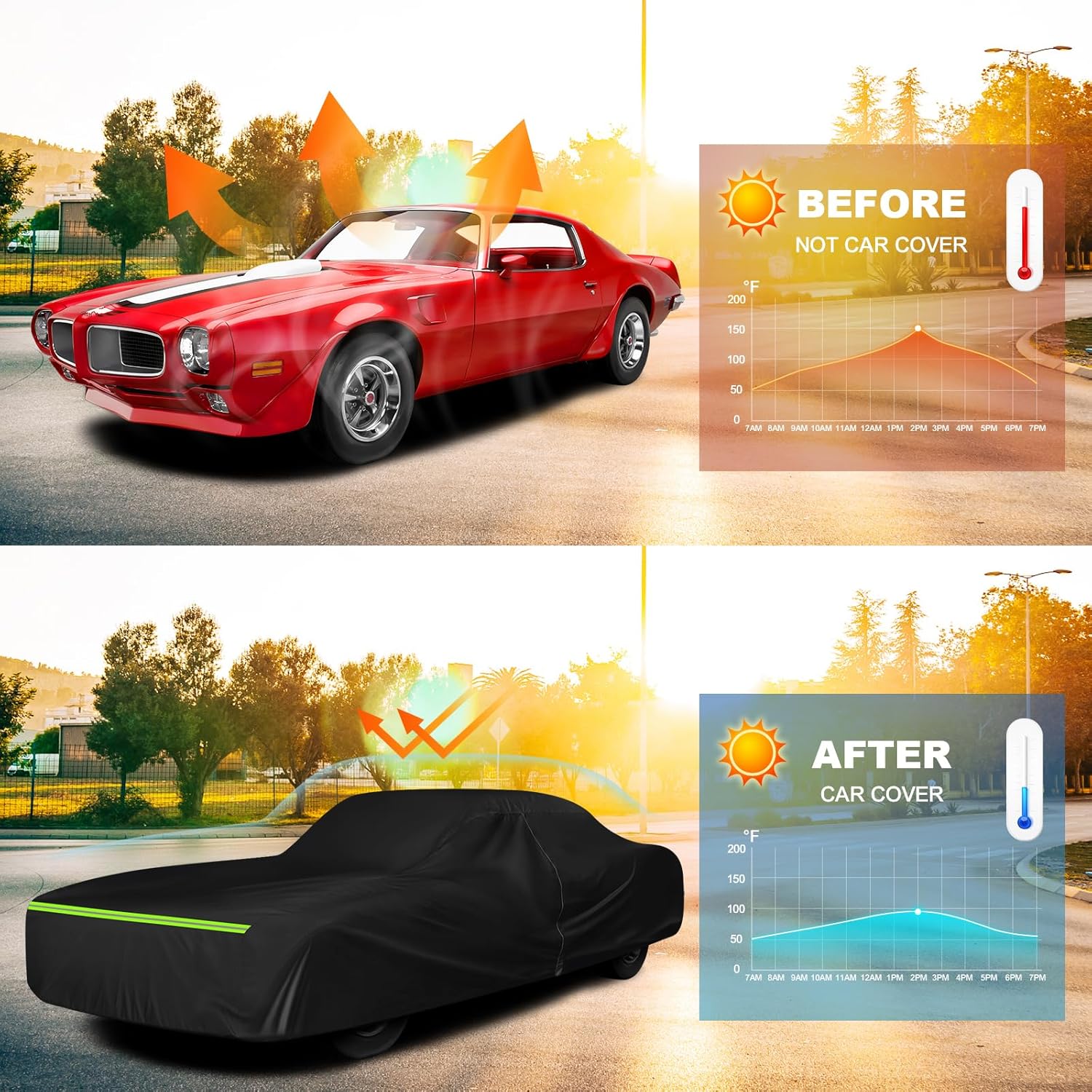 - 【Applicable model】Product Size: 196.8(L)* 73.3(W)* 49.2(H)in. This full exterior cover is designed for the 1967-1992 pontiac firebird.*Please check your car's model and size data before purchasing.