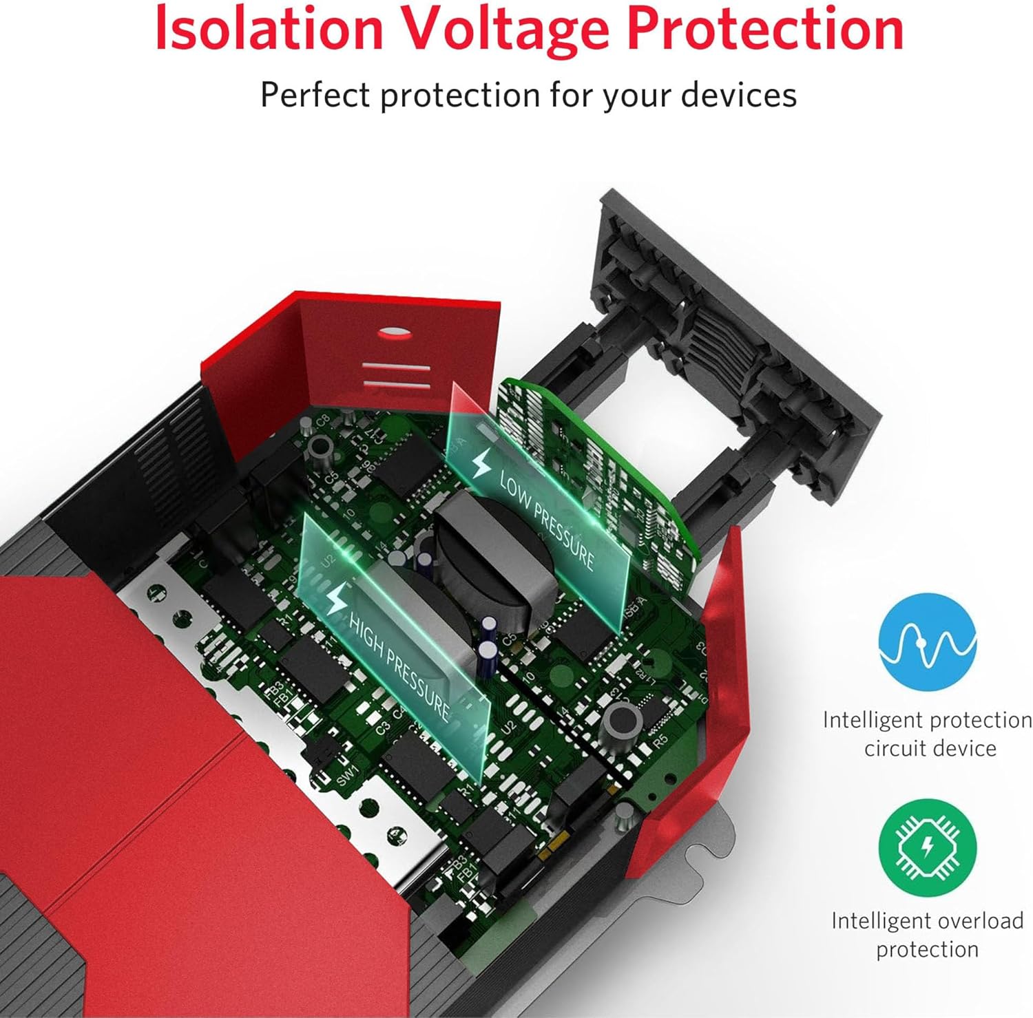 - Multi-Protection: Built-in replaceable 30A/32V*2 fuses and cooling fan for safety and easier maintenance. Full protection and auto-shutdown keep your appliance and car from overheating, overloading, low load, short circuit, low voltage and over voltage. (Applied for a 12V car)