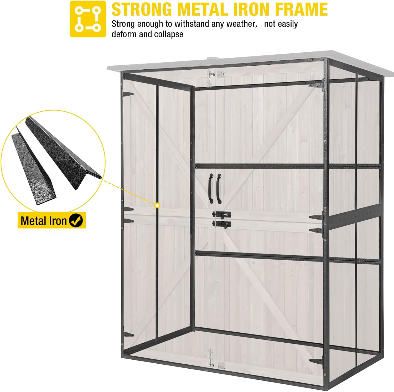 Aivituvin Storage Shed Outdoor Storage Cabinet Upgraded with All Arounded Metal Frame, Wooden Floor and Adjustable Shevels 55" L x 29" W x 67" H, Dark Brown