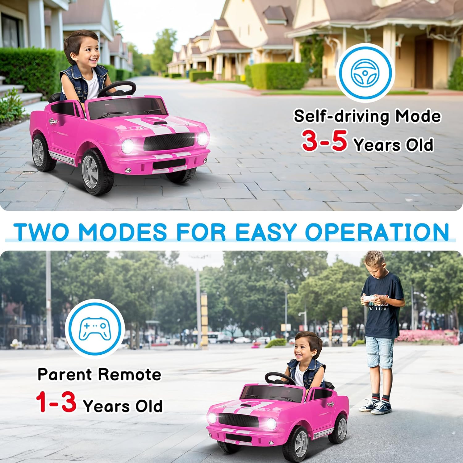 Winado 12V Licensed Shelby Electric Car for Kids, Battery Powered Ride On Toy for Toddlers with Remote Control, Upgrade Panel, Bluetooth, Shock Absorbers, Safety Belt, 3 Speeds, LED Lights - Pink