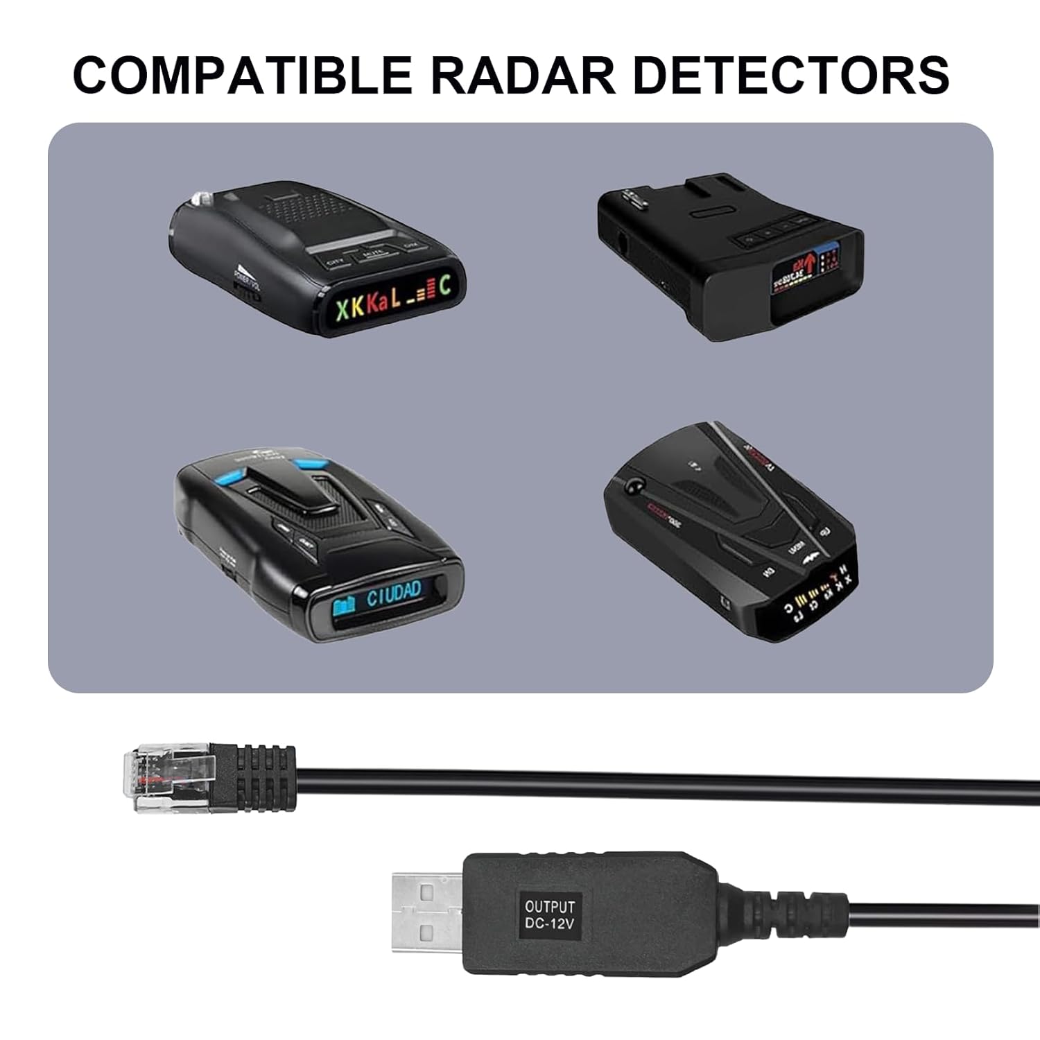 Radar Detector Cable for Escort Passport 9500ix, Beltronics, Uniden R1 R3 R7, USB to RJ11 Plug Cable 5Ft