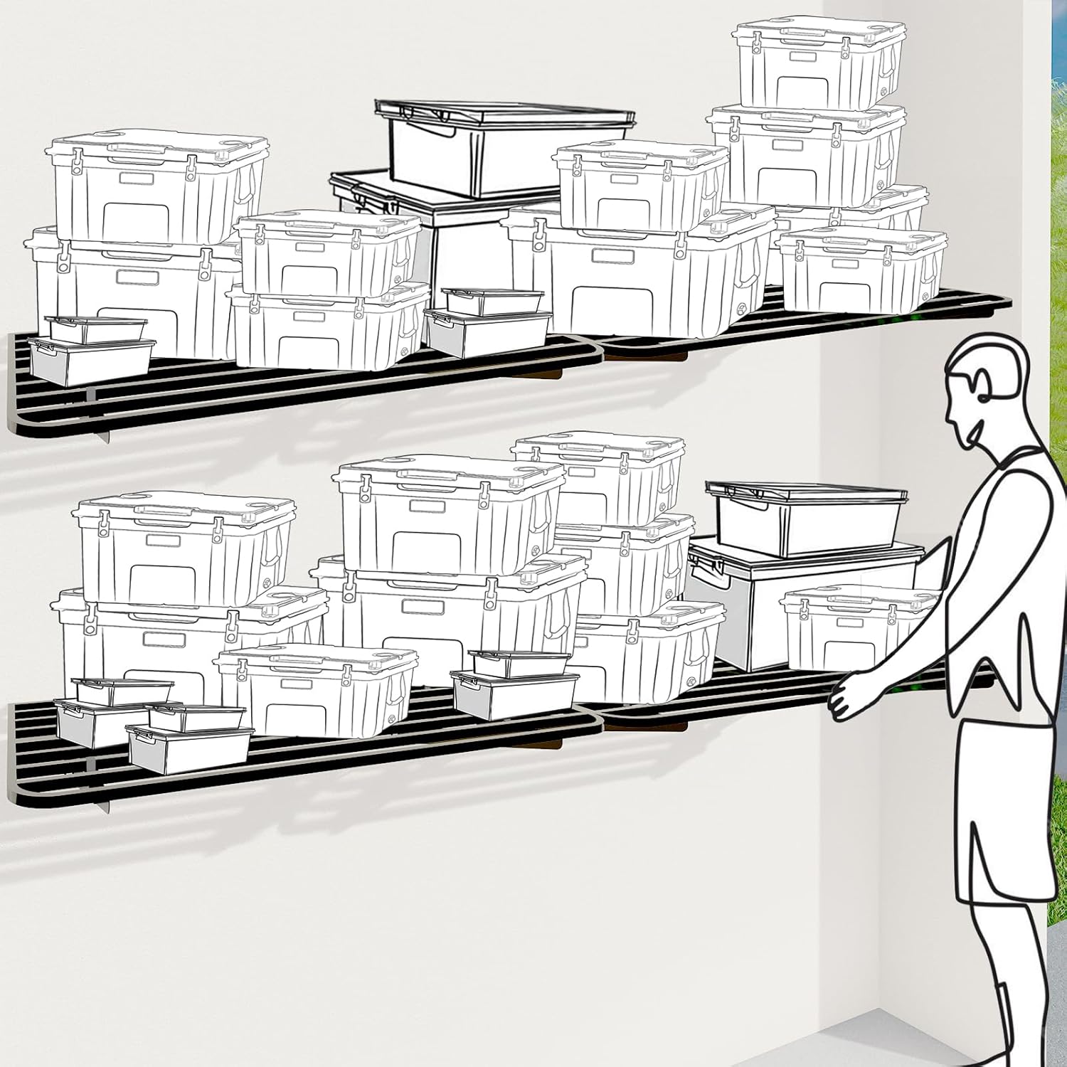 - 【Garage Shelving】: Includes a 4-pack of wall mounted garage shelves, each measuring 24 x 48'IN, perfect for holding storage bins, boxes, sporting goods, tools, and more. say goodbye to cluttered garage space storage.