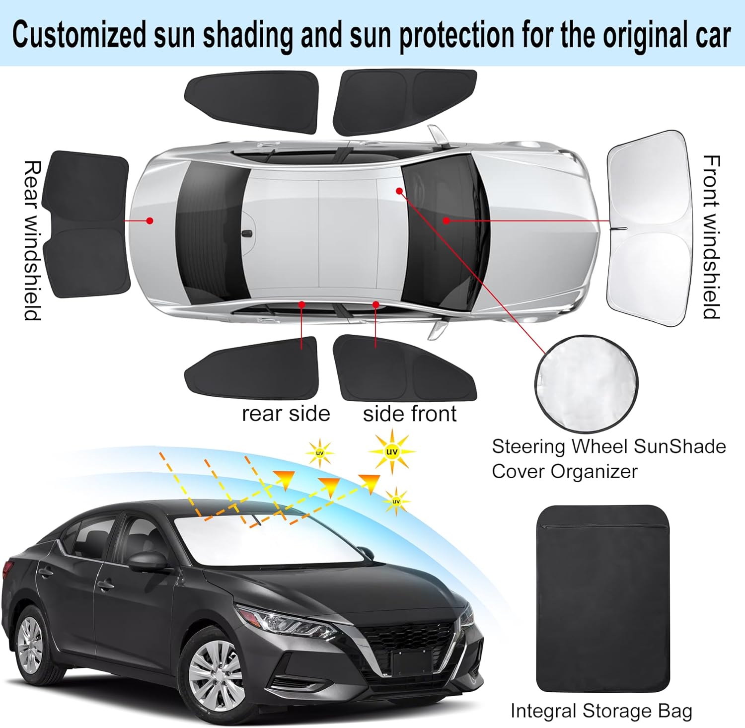- Customized Design:The sun shade custom fit for Nissan Sentra 2020 2021 2022 2023 2024 2025.Our window shade is according to the car size design,perfectly fit your car and does not need to trim.windshield sun shade solve the problem of light leakage and incompatibility of the old umbrellas.The sunshade designed for Nissan Sentra.