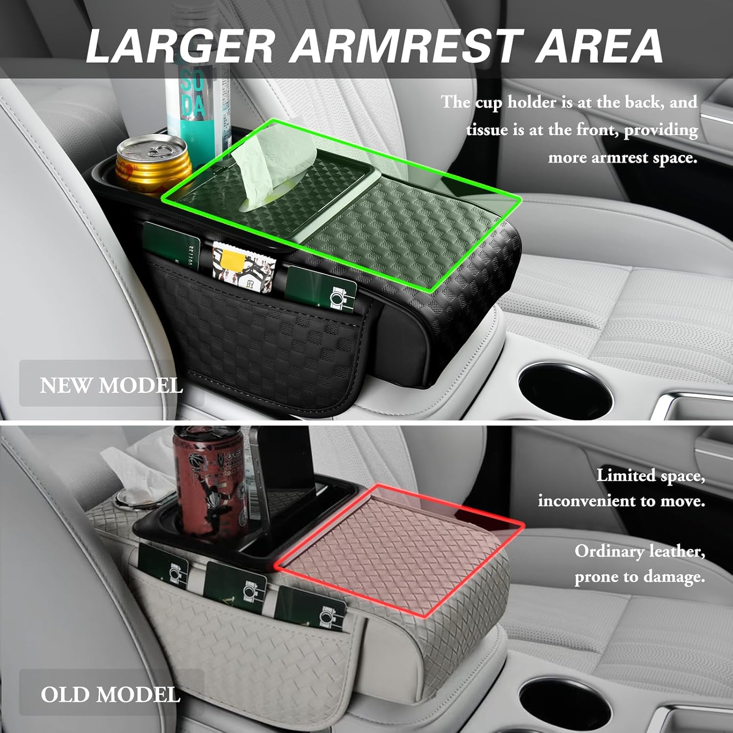 - 10" Ă— 8" Extra-Large Armrest Area: We have designed a front tissue storage and rear cup holder to ensure that the armrest area remains spacious enough (allowing you to rest your arm on the tissue box) while still providing storage functionality, thus preserving the original purpose