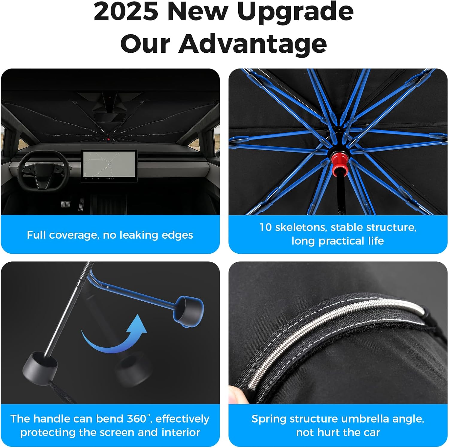 - Customized Fit: Size 54x60x61inches.Windshield sun shade umbrella is custom designed for the 2024 2025 Tesla Cybertruck sunshade and is suitable for the front window of the 2024 2025 Cybertruck accessories.