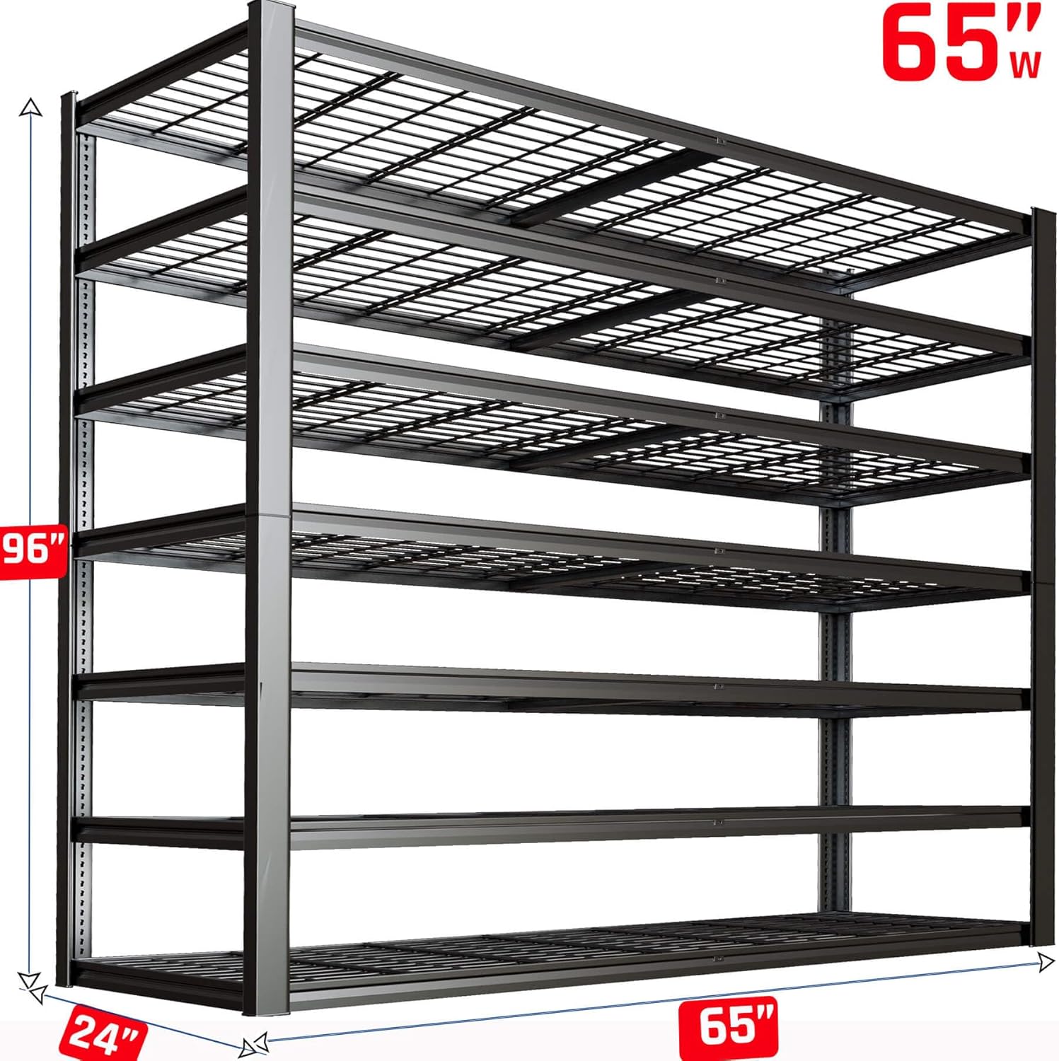 - Size : 65"Wx24Dx96H | 7 Tier