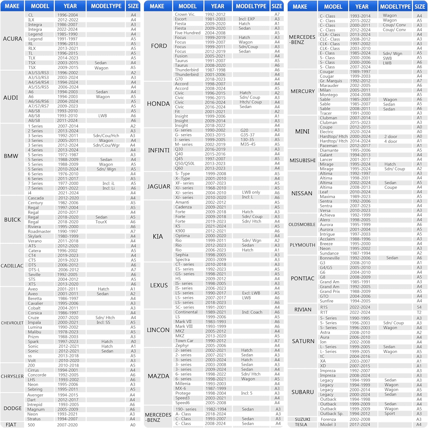 - 【Suitable for】:Custom fit for every vehicle in the size chart,so you can be sure that it will fit properly and offer the maximum level of protection.(see the Size Chart in images)