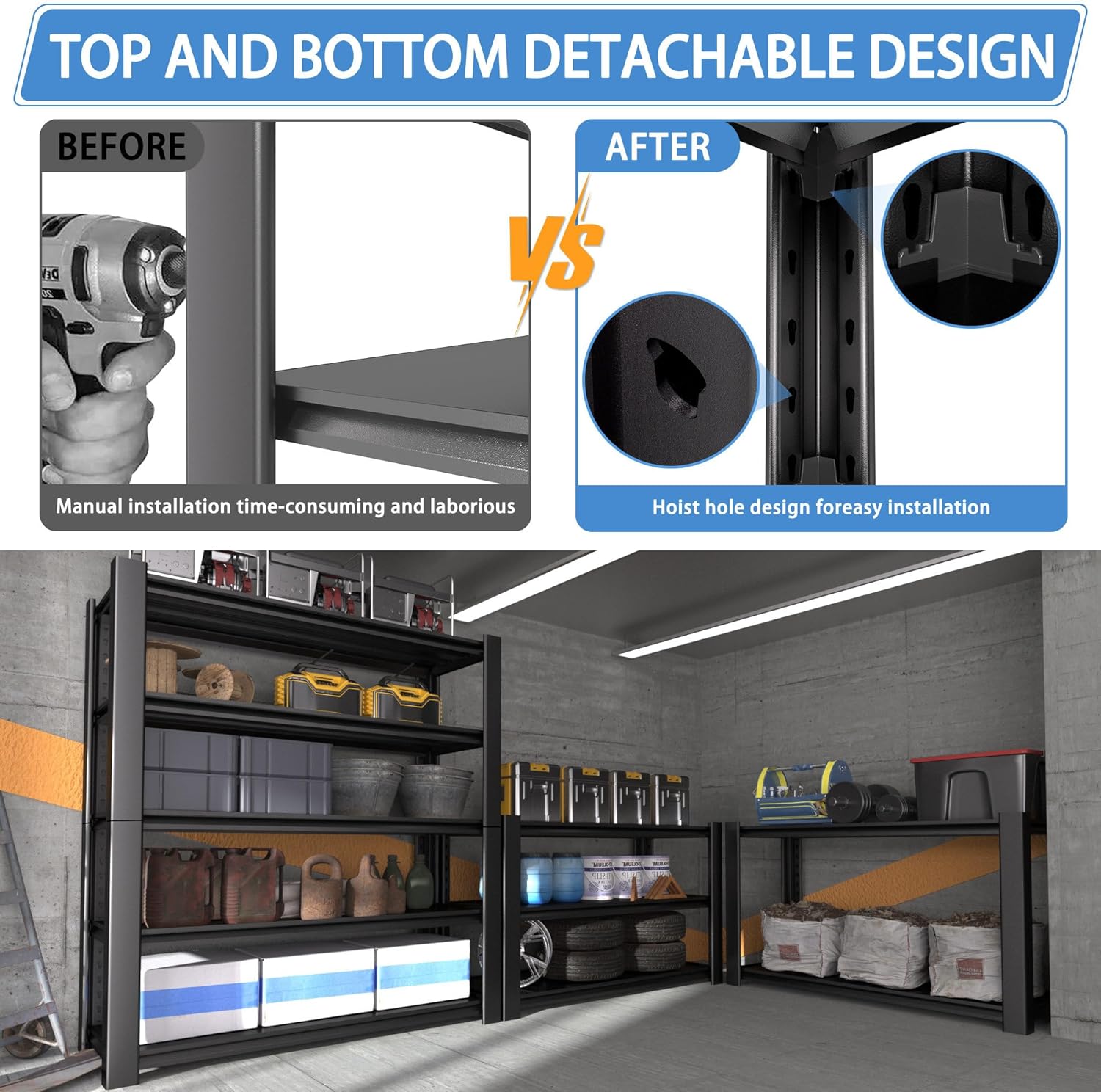 - Versatile for Any Space & User: This metal shelving unit declutters and organizes any area where you need storage. It's ideal for the garage, workshop, basement, pantry, utility room, or warehouse – holding tools, supplies, and household items with ease. Perfect for DIYers, mechanics, homeowners, renters, and handymen seeking a dependable storage solution.