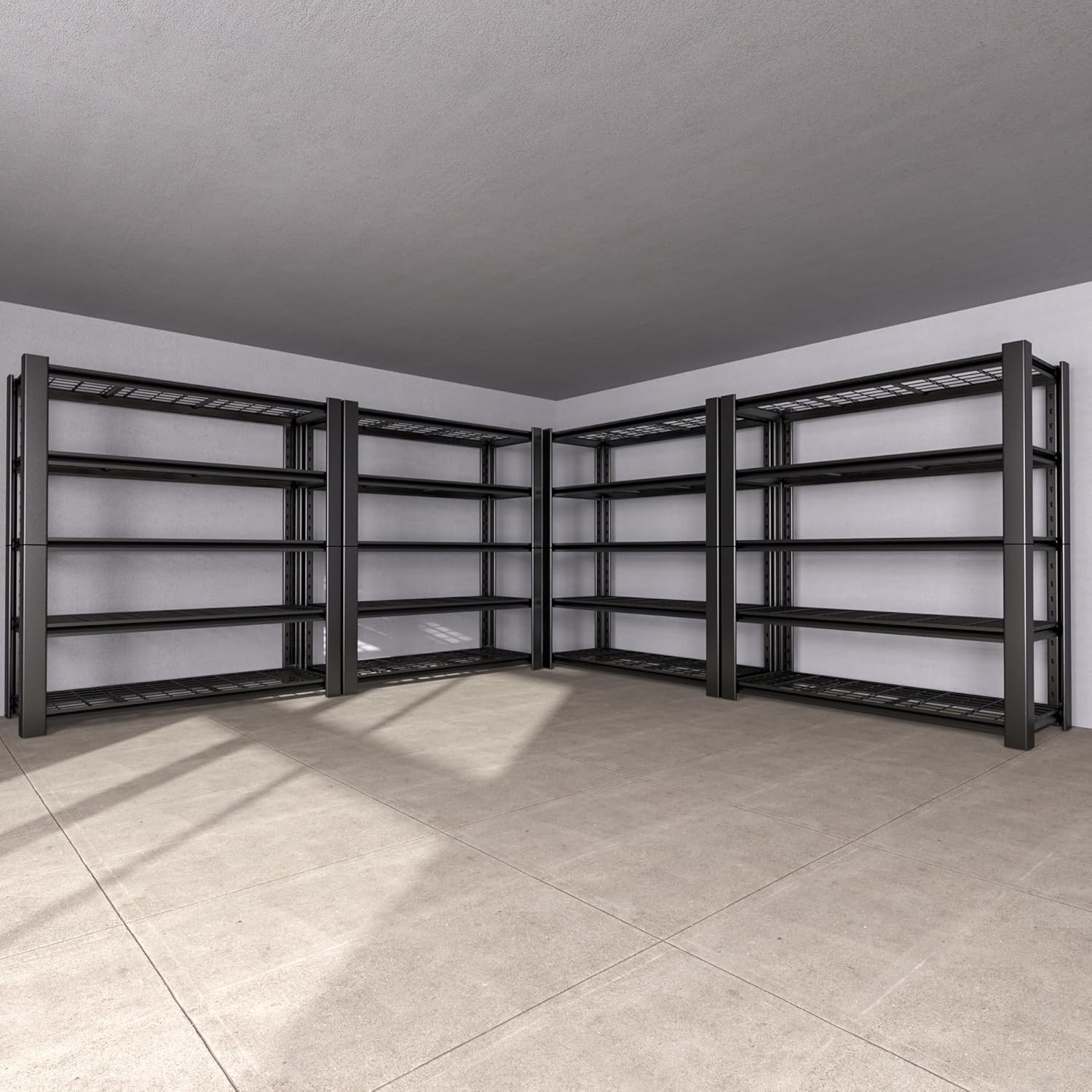 5-Tier Heavy Duty Garage Shelving Unit with Wire Shelves,3000 LBS Capacity Metal Storage Rack 76"H x 60"W x 24"D,Adjustable Boltless Steel Shelves for Garage,Basement,Pantry,Warehouse.4 Pack