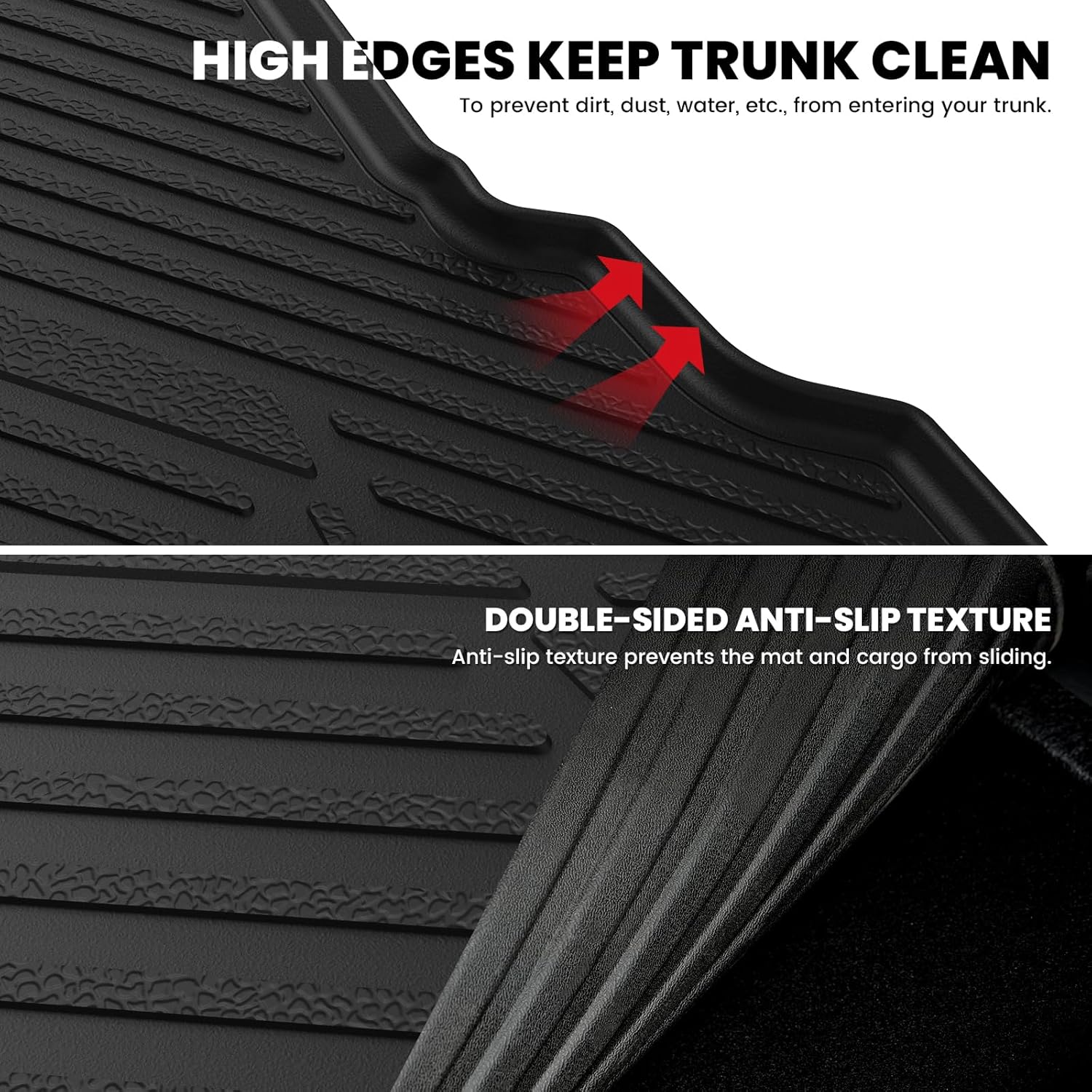 - FIRM YET FLEXIBLE - These durable Fusion cargo mats & trunk mat Raised edges all the way around and have been upgraded to the use of innovative material, allowing our floor liners to last long, and way more durable that they won't curl or end up buckling.