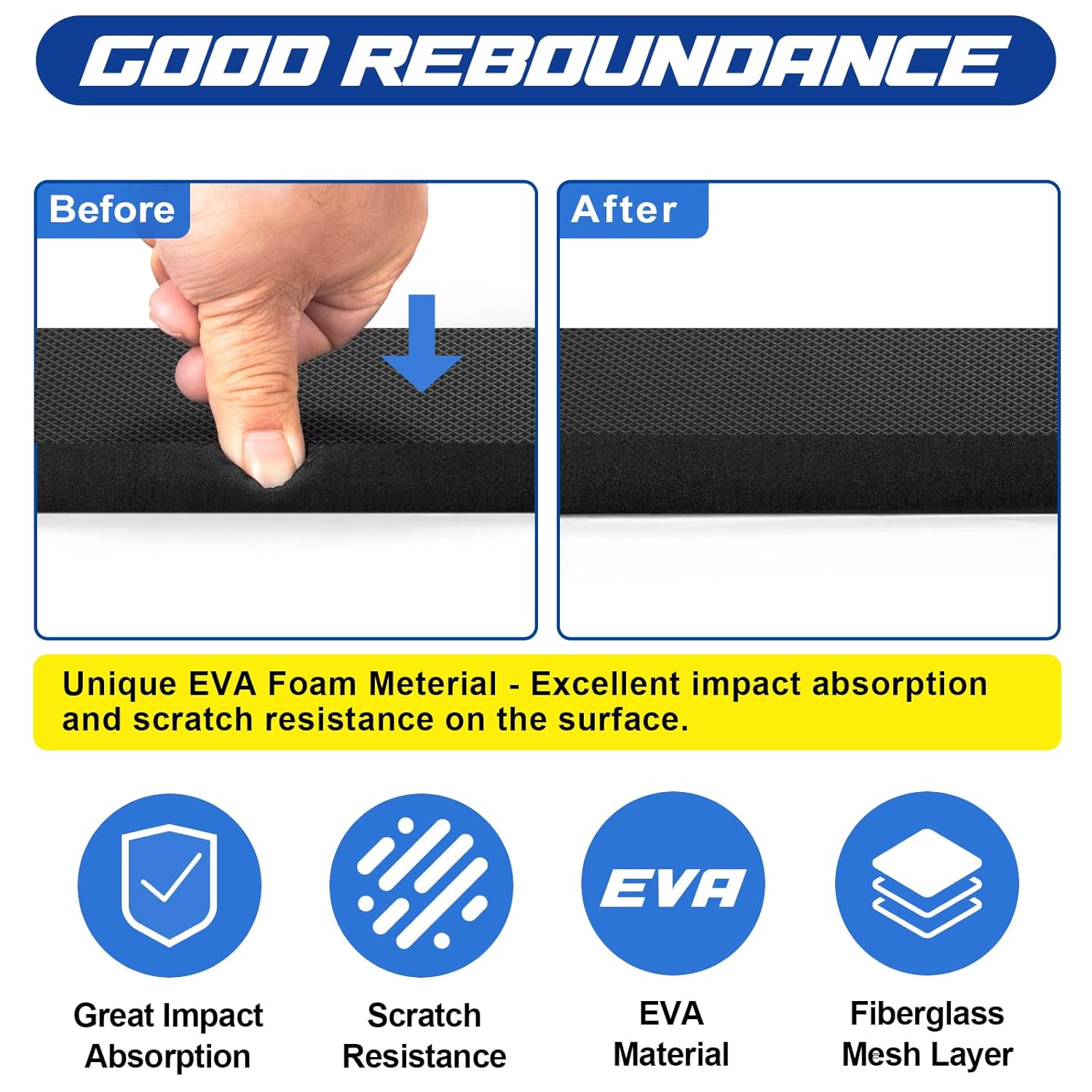 - Superior Quality: Our garage car door protector is made with high-quality materials for reliable performance. The mesh fabric backing provides excellent adhesion, ensuring it stays in place while also being easy to remove without damaging your walls. The durable foam is waterproof and fire-resistant for added safety. Plus, the textured design not only looks good but also helps prevent scratches.