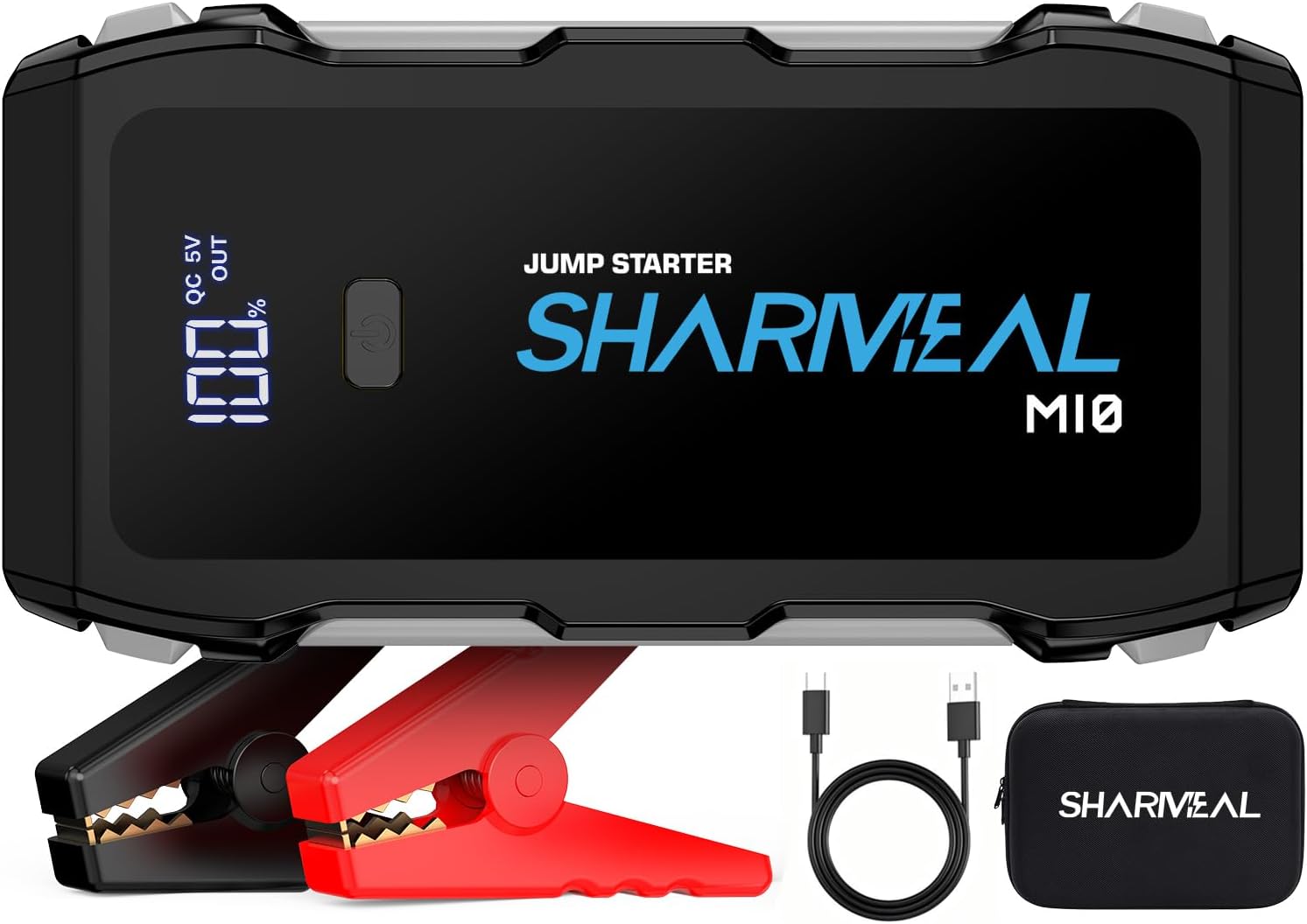 - 【Start Dead Batteries】The Sharmeal car battery jump starter power pack with 3000A peak, safely start the 12V vehicles in seconds with this booster(up to 9.0L gasoline/7.0L diesel engines). It is suitable for cars, trucks, motorcycles, tractors, snowmobiles, etc.