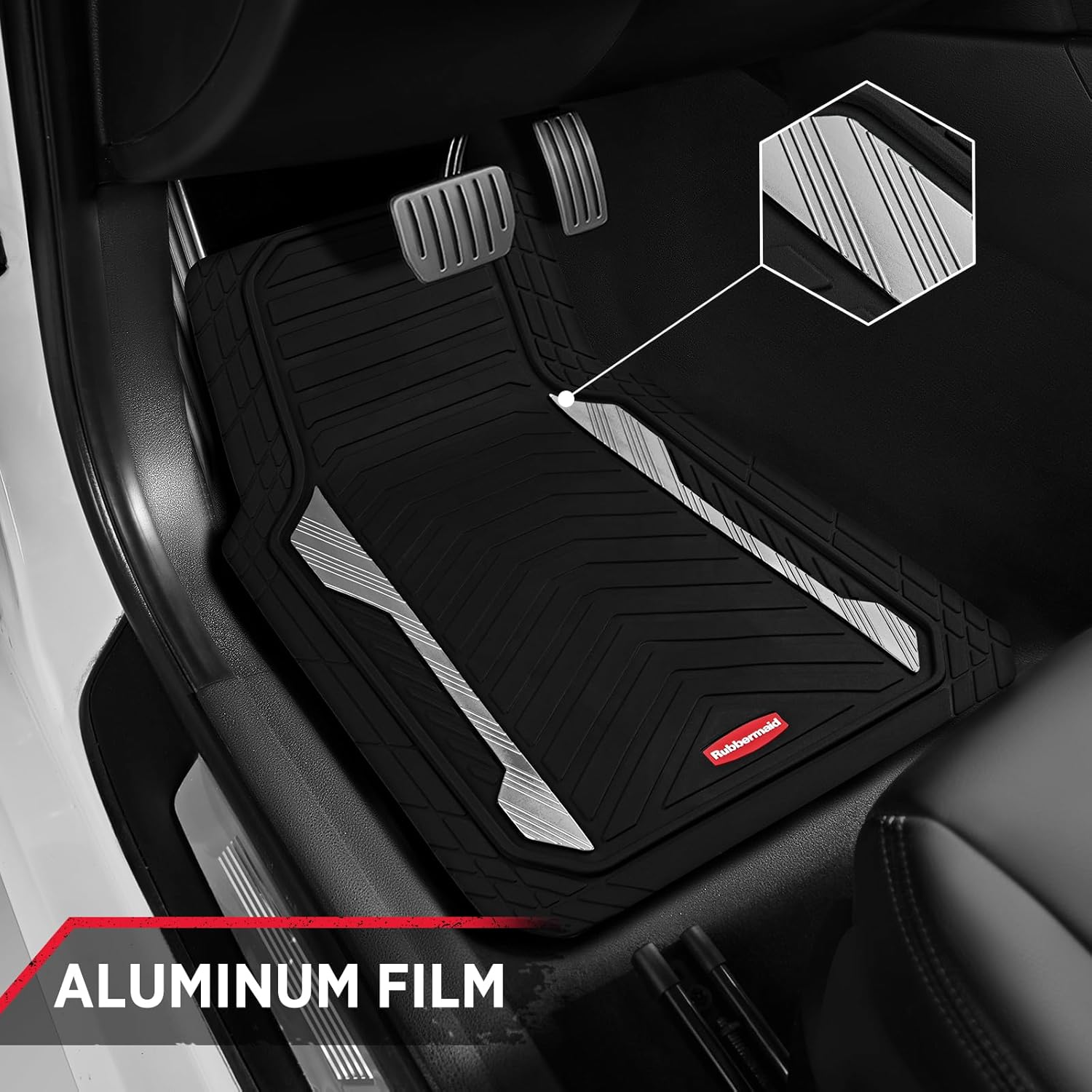 - Ready for the Road, Styled for Impact: Take your vehicle’s interior to the next level with rugged protection and a bold custom look. Featuring brushed sliver aluminum accents embedded in durable rubber mats, these floor liners combine strength with standout style.