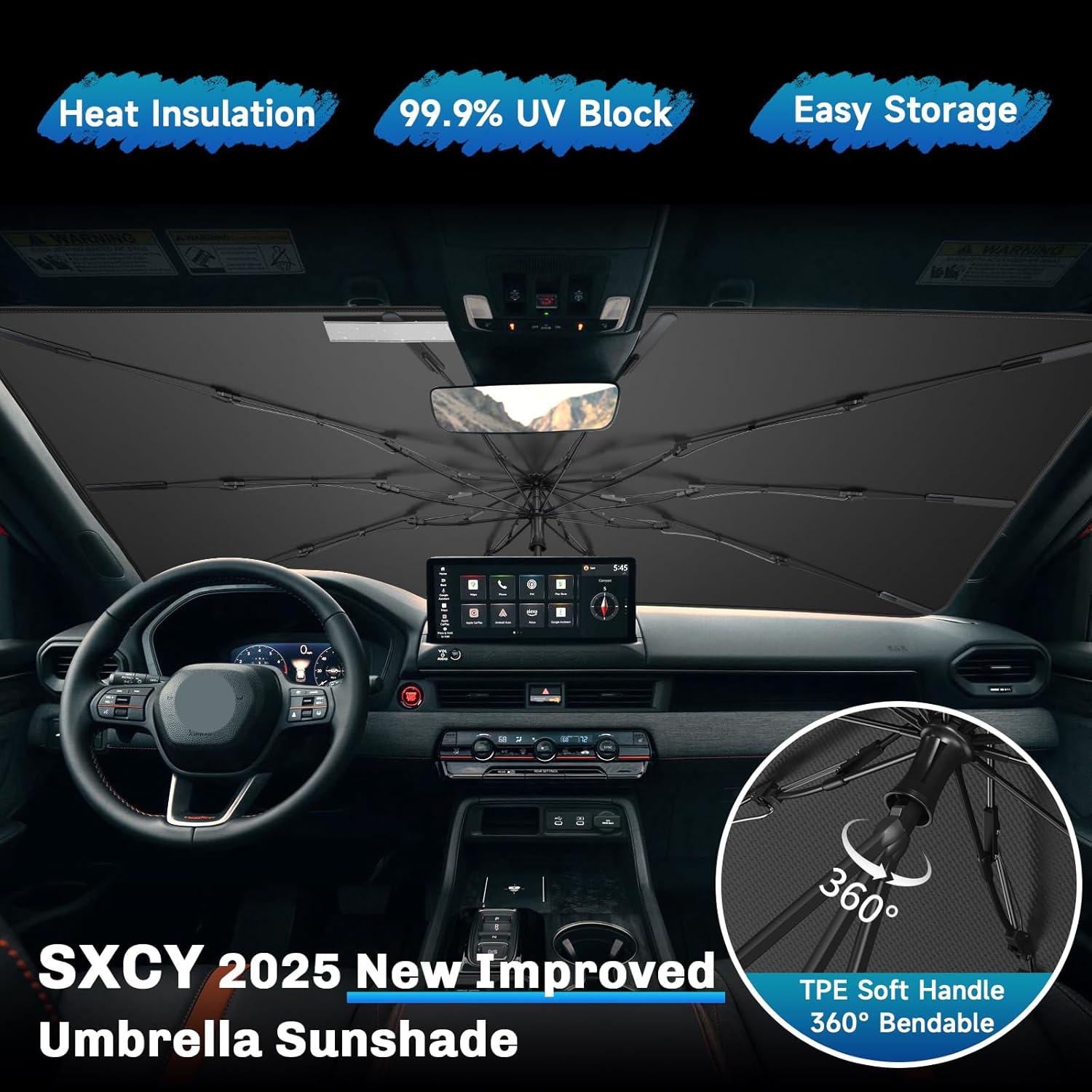 - 4. Practical & Scratch-Free: This 2024 2025 Passport Sunshade Umbrella comes with a silicone sleeve to safeguard your dashboard and a flexible TPE handle for scratch-free installation. A must-have for keeping your 2025 Passport cool and UV-protected every day