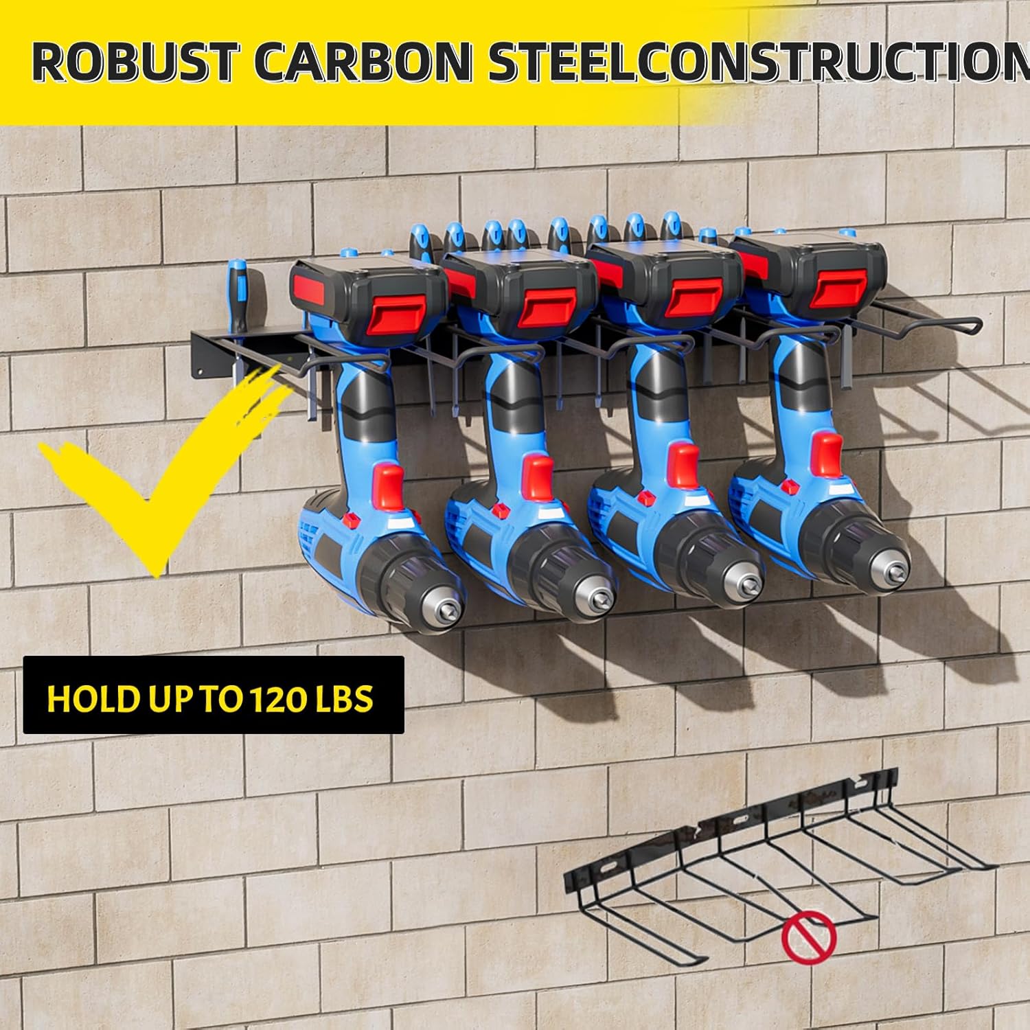 - 💪420-600 LB Load Capacity & Heavy-Duty Construction : Engineered from industrial-grade steel, our large power tool organizer wall mount boasts an exceptional 420-600 lb load capacity. Confidently store heavy power tool storage of any weight. Rigorous testing ensures stability – no more worries about breakage or falls.