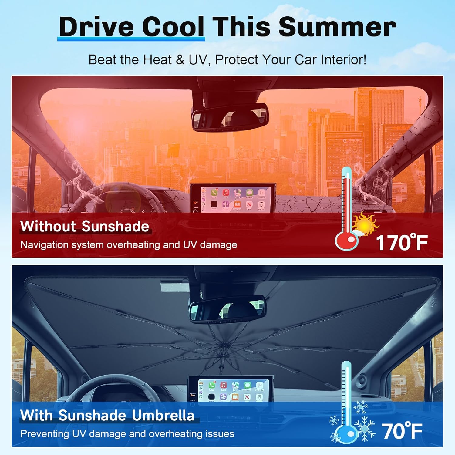 - 5. Portable & Universal Fit: Folding to umbrella size, easy to store and carry. Compatible with 2025 Odyssey/Pathfinder/Sienna/ID.Buzz/Ascent/Pacifica/Model 3/Model Y/Model S, it provides adjustable coverage and adapts to most windshields, with slight adjustments for a better fit