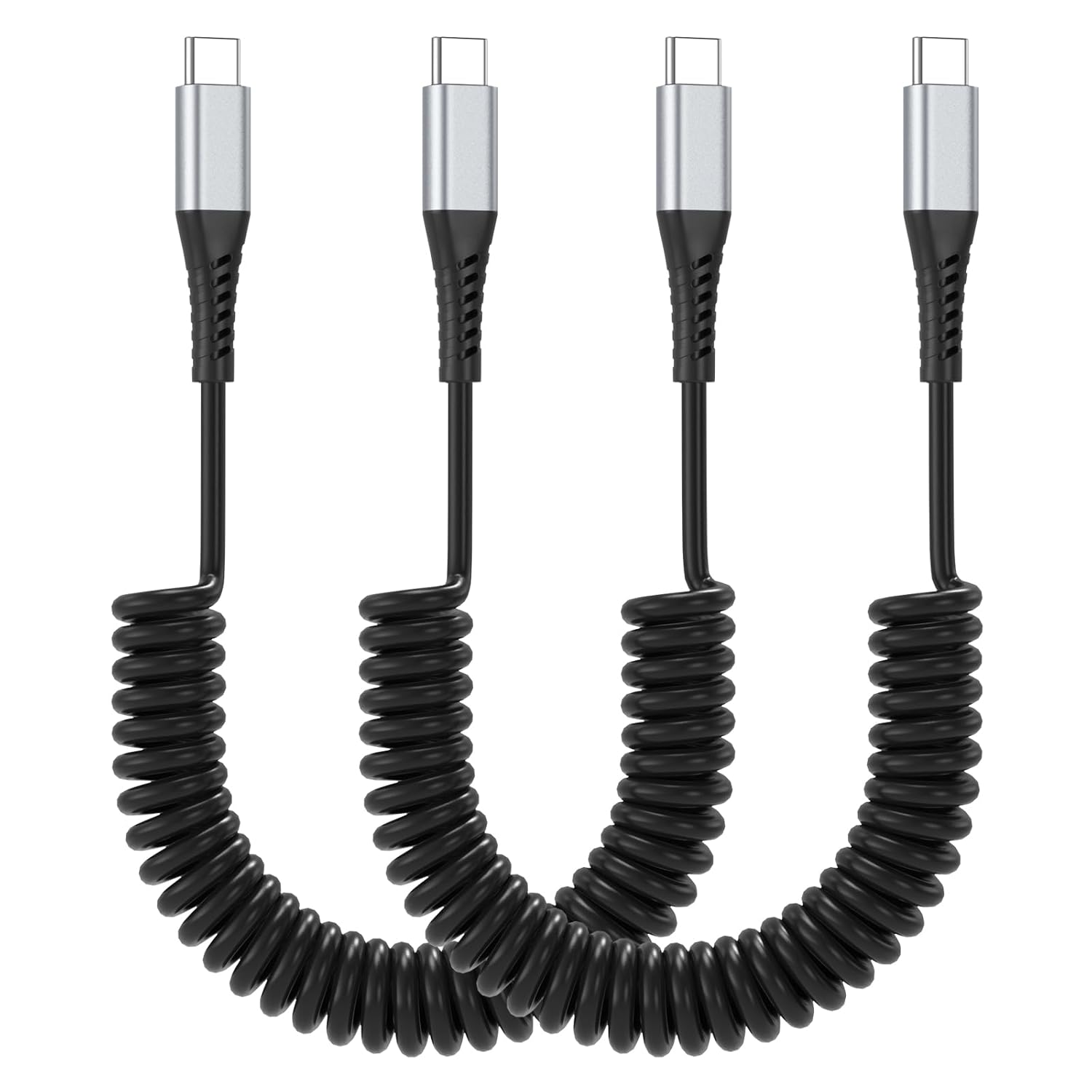 Coiled USB C to USB C Cable, 2 Pack Retractable USB Type C Charging Cable 60W USB C to C Coiled Cord for iPhone 16 15 Pro, Samsung Galaxy S25 S24 Ultra / A16, Moto G, Google Pixel, iPad Air 4