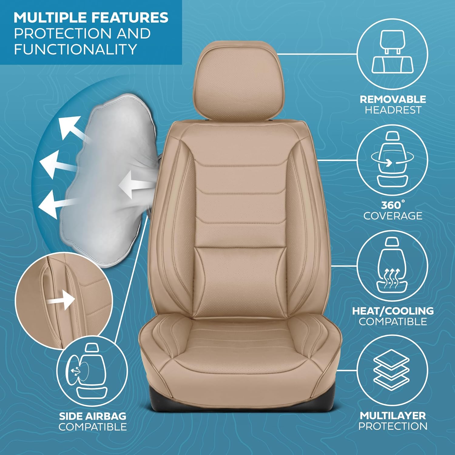 - ULTIMATE PROTECTION: MotorBox faux leather car seat covers offer ultimate protection against spills, stains, dirt, and wear. Designed to shield your seats from daily damage, these covers help maintain the original condition of your car’s interior, ensuring durability and extending the lifespan of your vehicle’s seats. Not just for cars, these are leather seat covers for trucks & SUVs too!