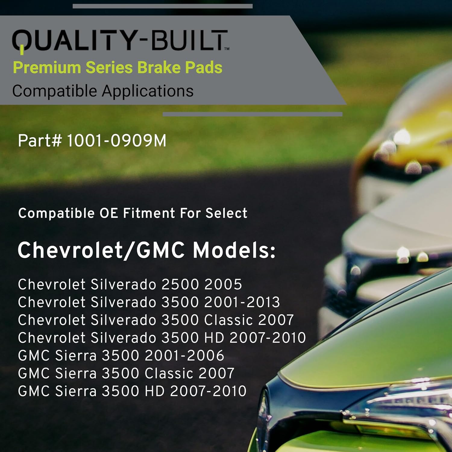 Premium Semi-Metallic Rear Brake Pads (1001-0909M) Compatible with 2001-2013 Chevrolet/GMC (Sierra 3500/Sierra 3500 Classic/Sierra 3500 HD/Silverado 2500/Silverado 3500 & More)