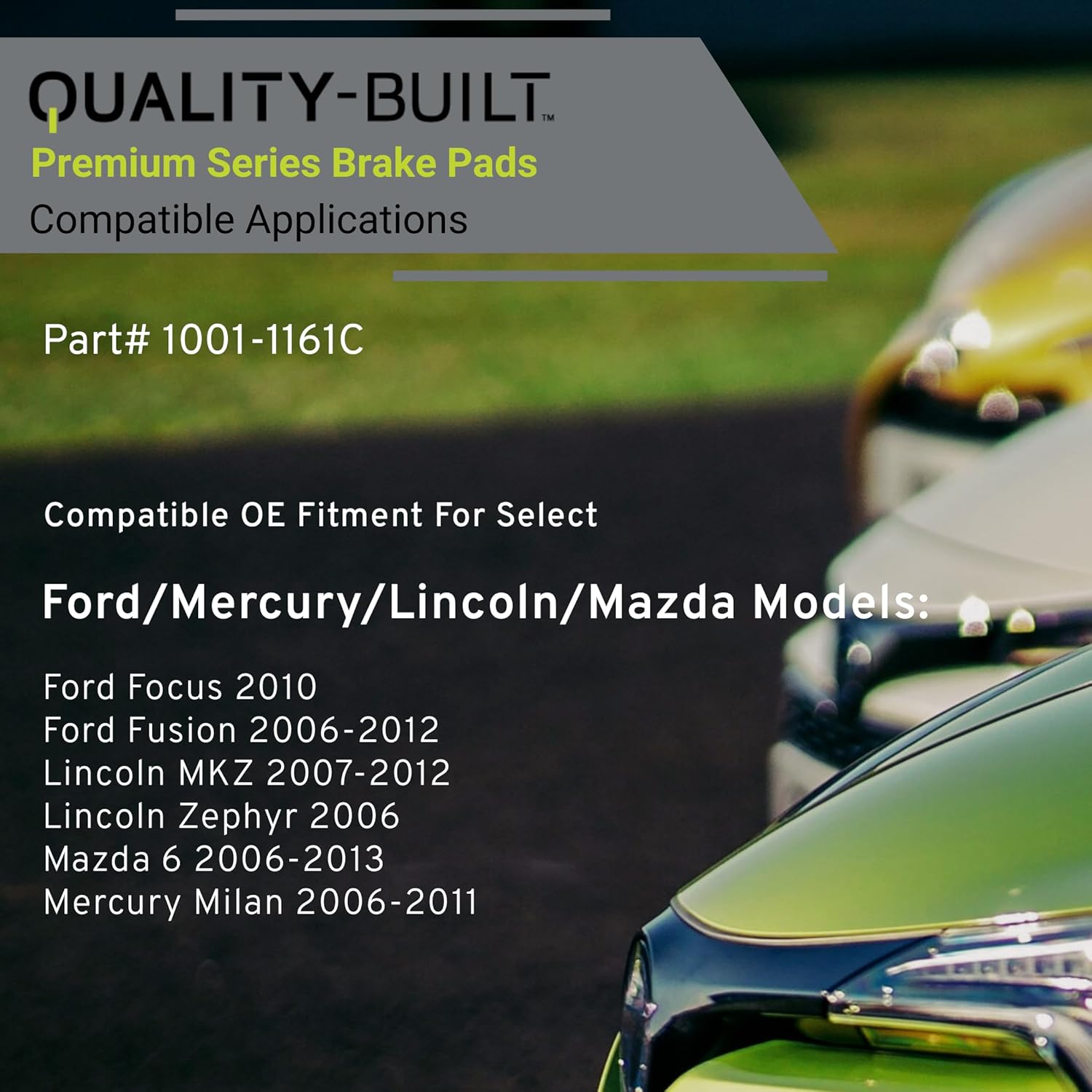Premium Ceramic Rear Brake Pads (1001-1161C) Compatible with Ford Focus 2010, Fusion 2012-2006, Lincoln MKZ 2012-2007, Zephyr 2006, Mazda 6 2013-2006, Mercury Milan 2011-2006