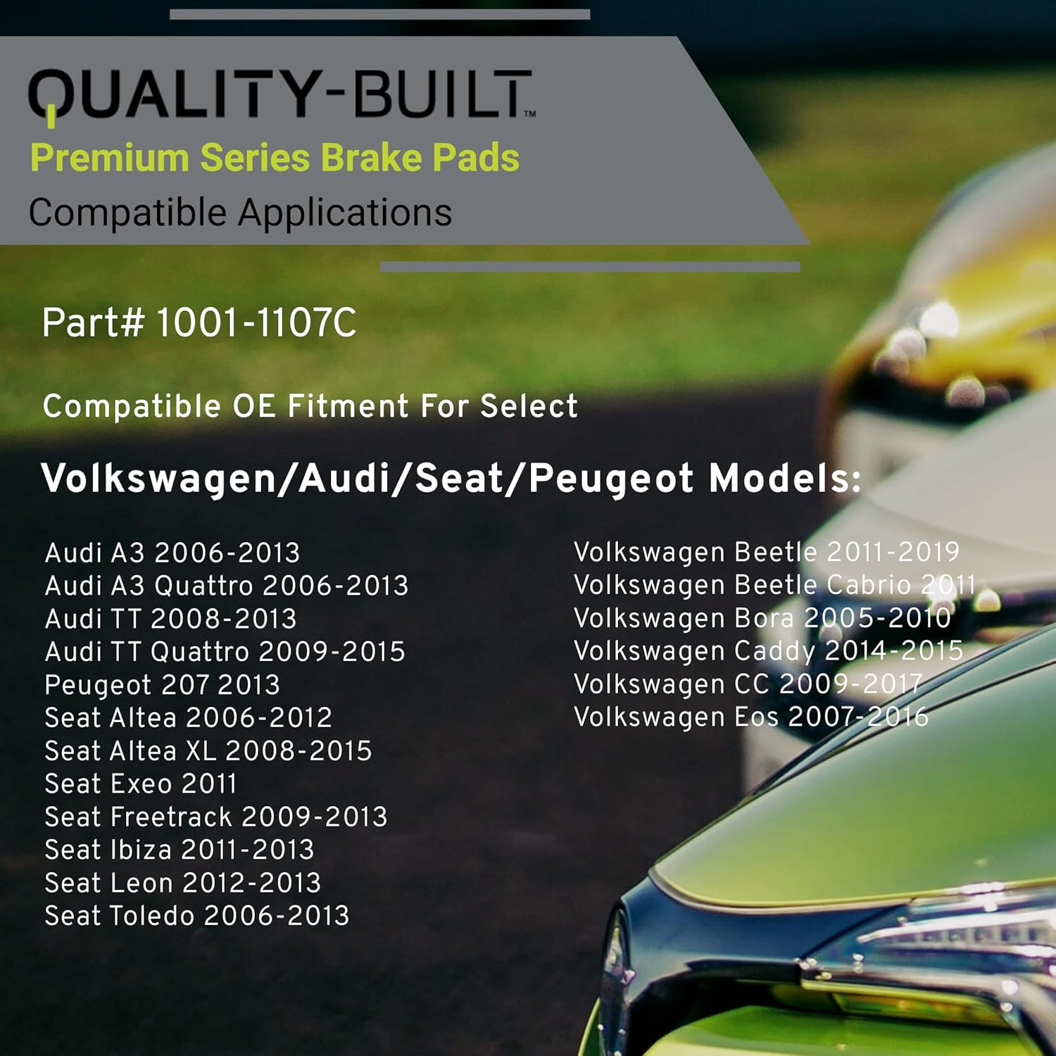 - FITMENT LIST: Select Models 2005-2019 VOLKSWAGEN/ AUDI/ SEAT/ PEUGEOT (1001-1107C) Verify Fitment using AmazonConfirmedFit tool.