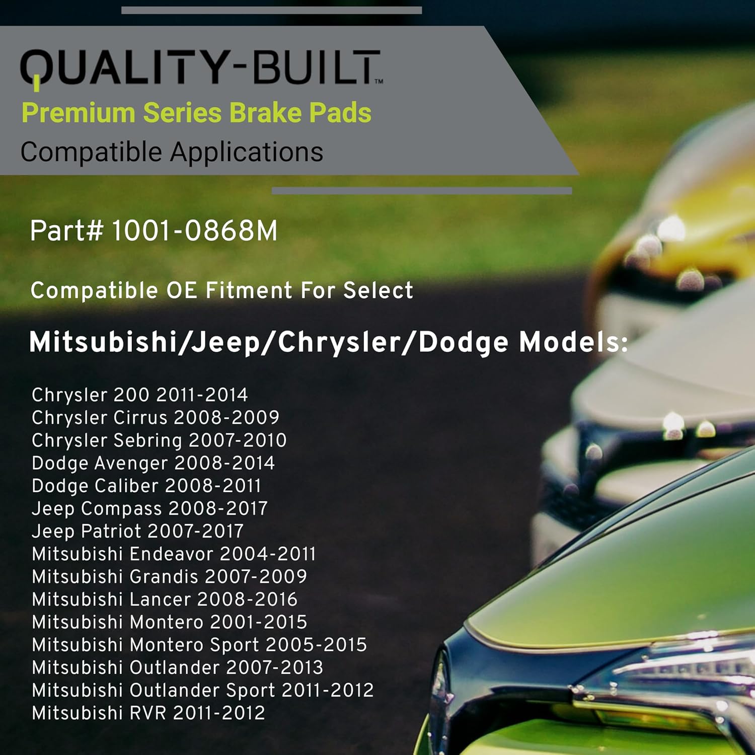 Premium Semi-Metallic Rear Brake Pads (1001-0868M) Compatible with 2001-2017 Chrysler/Dodge/Jeep/Mitsubishi (200/Avenger/Caliber/Cirrus/Endeavor/Grandis/Lancer/Montero/Outlander & More)