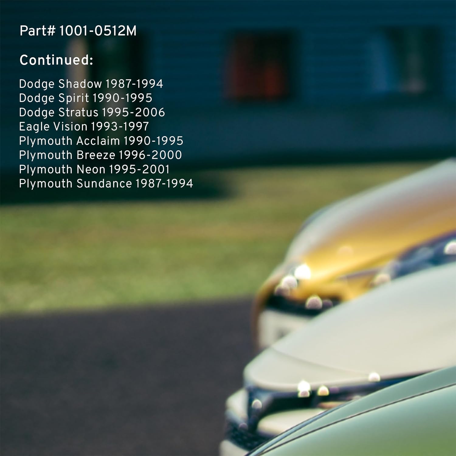 - FITMENT LIST: Select Models 1985-2010 CHRYSLER/ DODGE/ EAGLE/ PLYMOUTH (1001-0512M) Verify Fitment using AmazonConfirmedFit tool.
