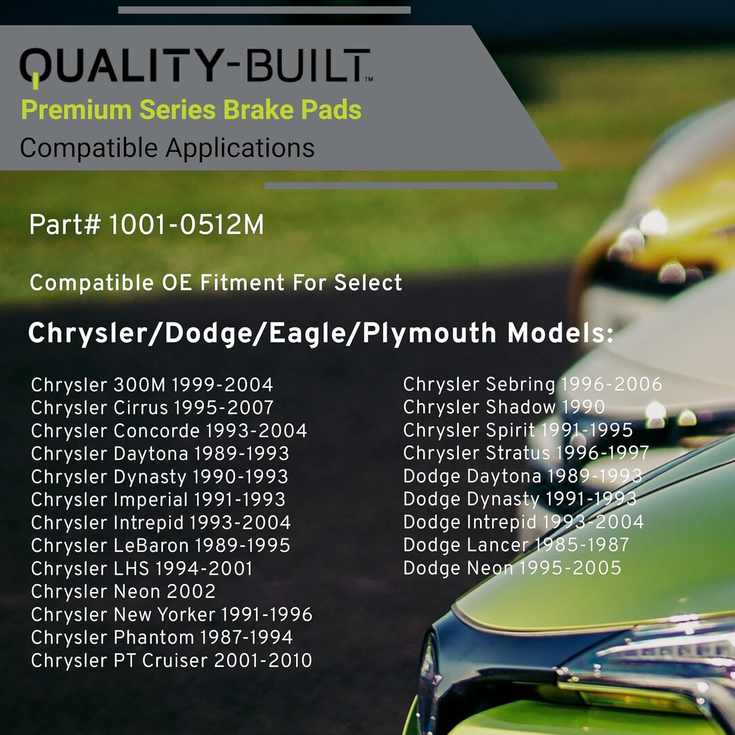 Premium Semi-Metallic Rear Brake Pads (1001-0512M) Compatible with 1985-2010 Chrysler/Dodge/Eagle/Plymouth (300M/Acclaim/Breeze/Cirrus/Daytona/Imperial/Intrepid/Lancer/LeBaron/LHS/Neon)