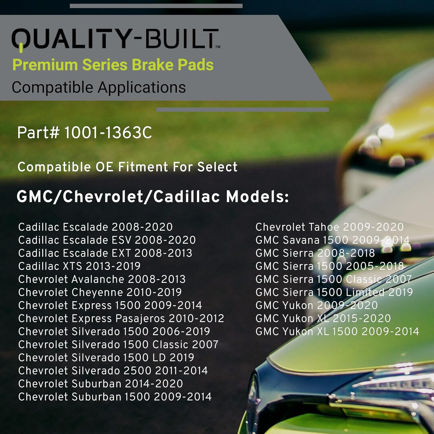 Premium Ceramic Front Brake Pads (1001-1363C) Compatible with 2005-2020 Cadillac/Chevrolet/GMC (Avalanche/Cheyenne/Escalade/Express/Savana/Sierra/Silverado/Suburban/Tahoe/XTS/Yukon)