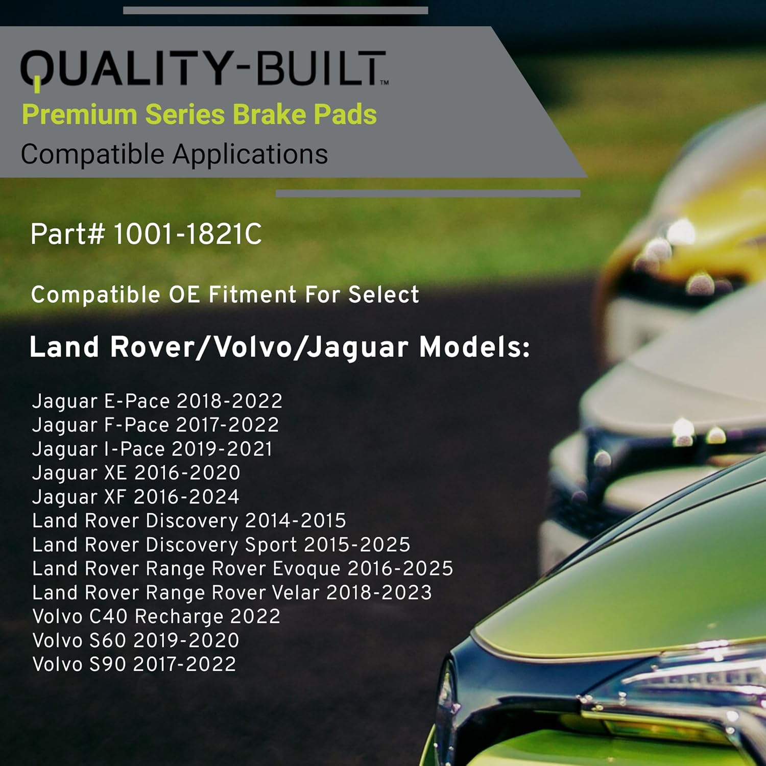 Premium Ceramic Rear Brake Pads (1001-1821C) Compatible with 2014-2025 Jaguar/Land Rover/Volvo (Discovery/E-Pace/F-Pace/I-Pace/Range Rover Evoque/Range Rover Velar/S60/S90/V60 & More)