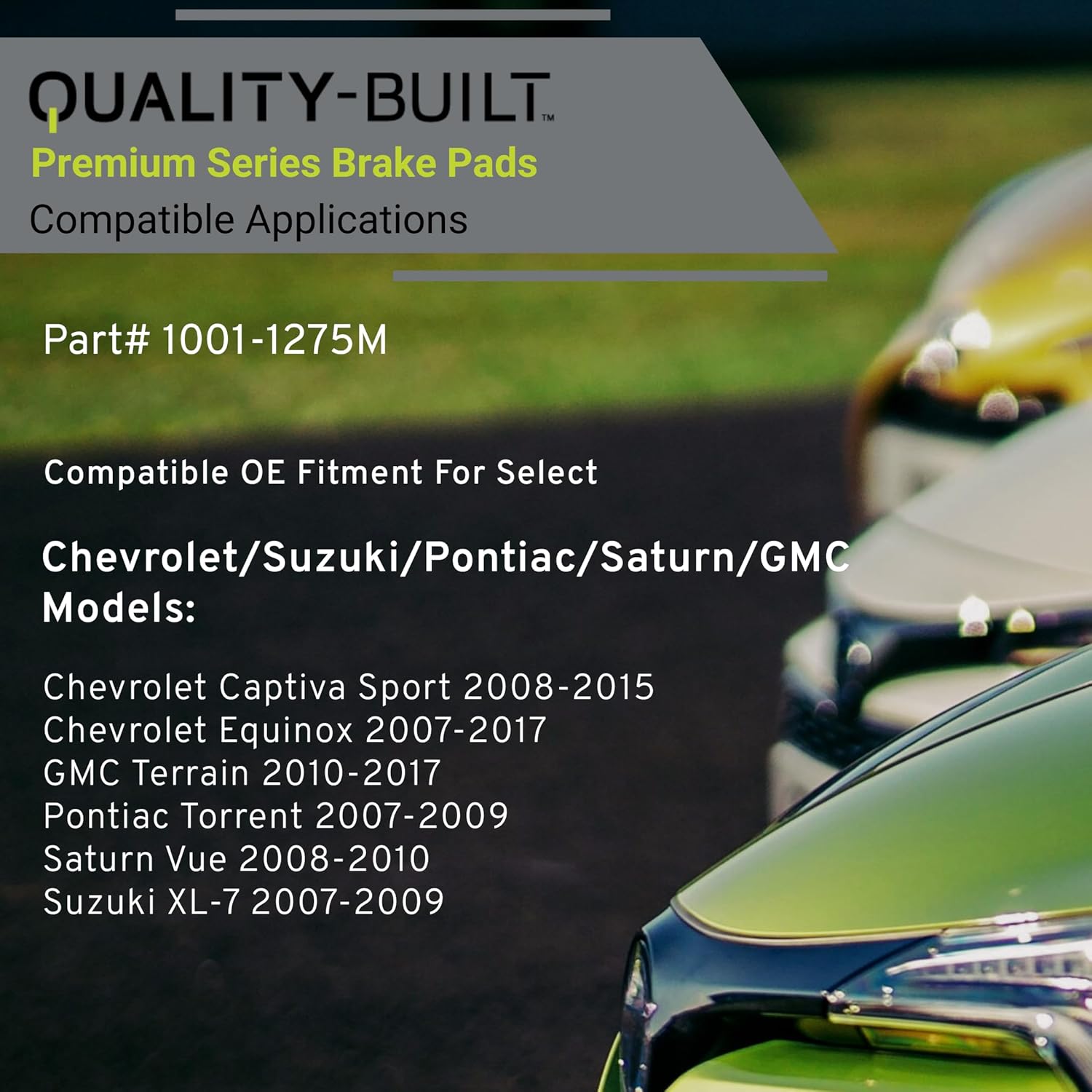 Premium Semi-Metallic Rear Brake Pads (1001-1275M) Compatible with 2007-2017 Chevrolet/GMC/Pontiac/Saturn/Suzuki (Captiva Sport/Equinox/Terrain/Torrent/Vue/XL-7)
