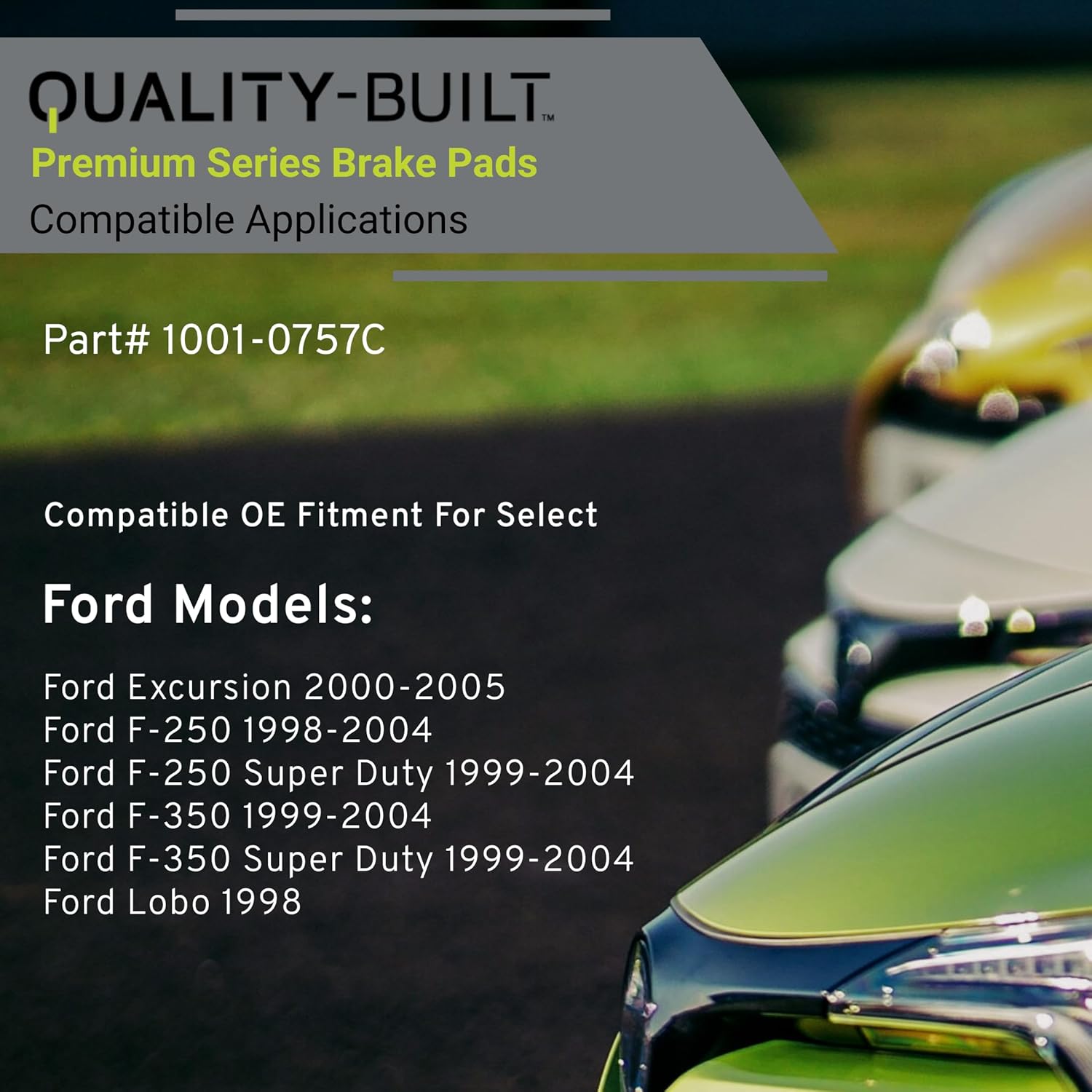Premium Ceramic Rear Brake Pads (1001-0757C) Compatible with Ford Excursion 2005-2000, F-250 2004-1998, F-250 Super Duty 2004-1999, F-350 2004-1999, F-350 Super Duty 2004-1999, Lobo 1998