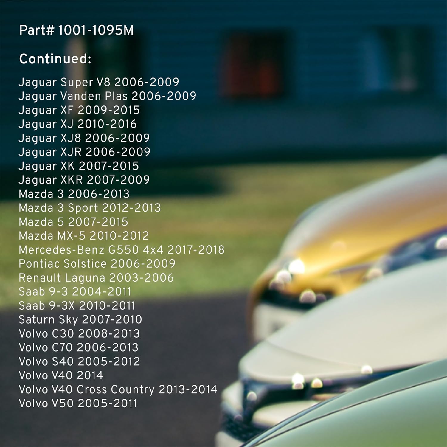 - FITMENT LIST: Select Models 2003-2023 SAAB/ VOLVO/ PONTIAC/ MAZDA/ JAGUAR/ SATURN/ CHEVROLET/ CADILLAC/ RENAULT/ FORD/ MERCEDES-BENZ (1001-1095M) Verify Fitment using AmazonConfirmedFit tool.