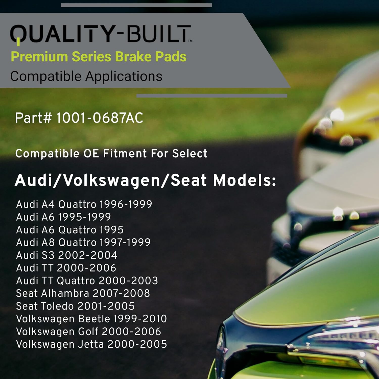 Premium Ceramic Front Brake Pads (1001-0687AC) Compatible with 1995-2010 Audi/Seat/Volkswagen (A4 Quattro/A6/A6 Quattro/A8 Quattro/Alhambra/Beetle/Golf/Jetta/S3/Toledo/TT/TT Quattro)